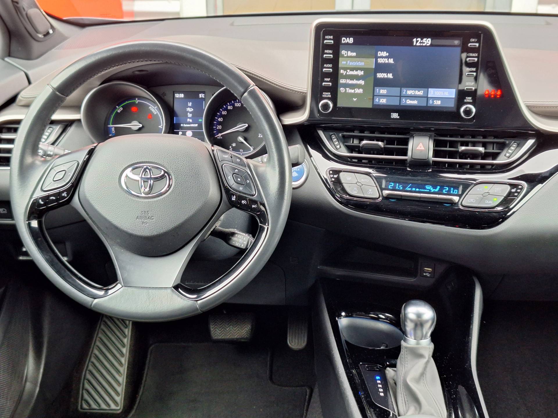 Zoals u mag verwachten van deze Toyota C-HR is hij uitgerust met een reeks aan actieve veiligheidssystemen. De actuele snelheidslimiet, een inhaalverbod en andere verkeersborden; de verkeersborddetectie ondersteunt u tijdens elke rit. Het Lane-keeping systeem zorgt voor een automatisch constante positie binnen de rijstrook. Afdwalen is uitgesloten. Veel aanrijdingen bestaan uit kop-staartbotsingen. De forward collision warning reduceert dat risico aanzienlijk. U bent mede dankzij dodehoekdetectie, hill hold functie, brake assist, vermoeidheidsherkenning en bandenspanningcontrolesysteem steeds veilig onderweg.