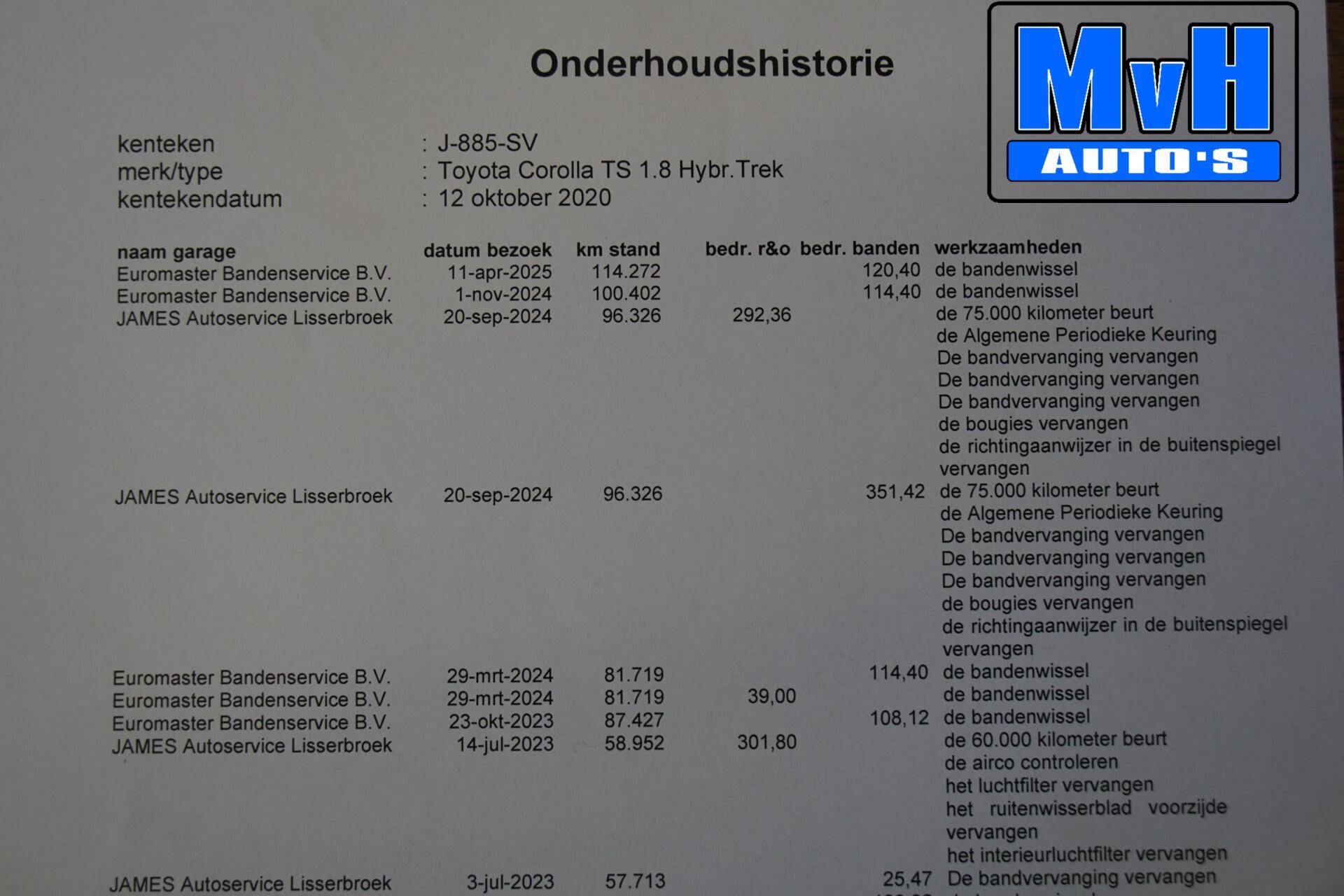 Laatste onderhoudsbeurt gehad in september 2024 bij 96.326km.