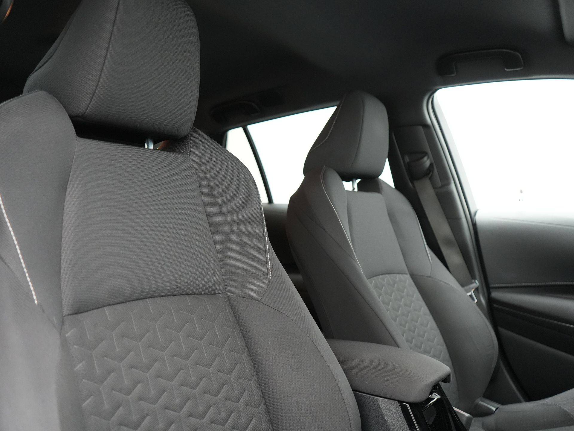 Zoals u mag verwachten van deze Toyota Corolla Touring Sports is hij uitgerust met een reeks aan actieve veiligheidssystemen. Verkeersborddetectie herkent tijdelijke en permanente verkeersborden langs en boven de weg. Het Lane-keeping systeem zorgt voor een automatisch constante positie binnen de rijstrook. Afdwalen is uitgesloten. De forward collision warning reduceert het gevaar van een botsing met een voorligger significant. Ook helpen het dodehoekdetectie, front assist, brake assist, vermoeidheidsherkenning en bandenspanningcontrolesysteem, uw rit tot een veilige rit te maken.