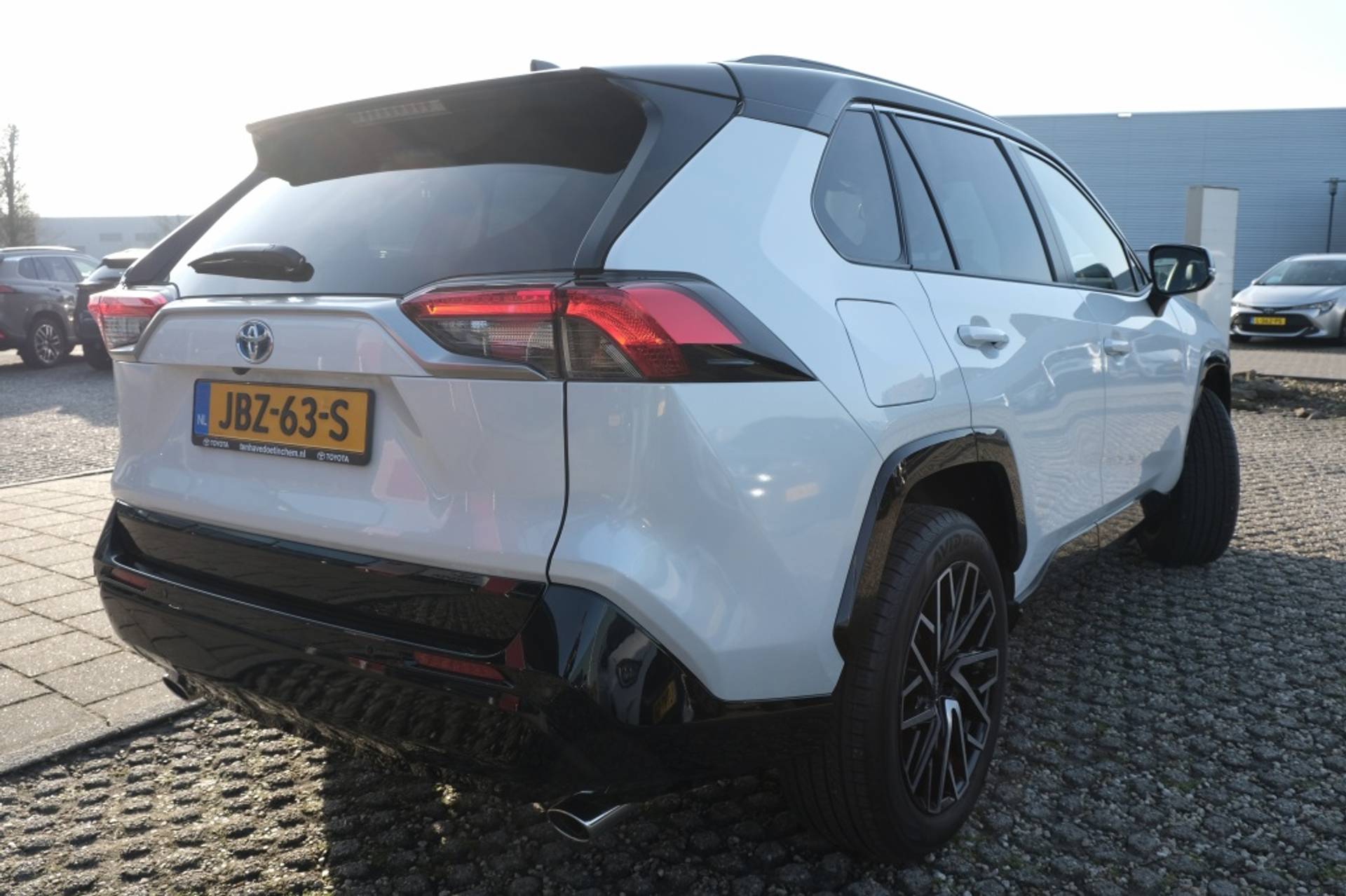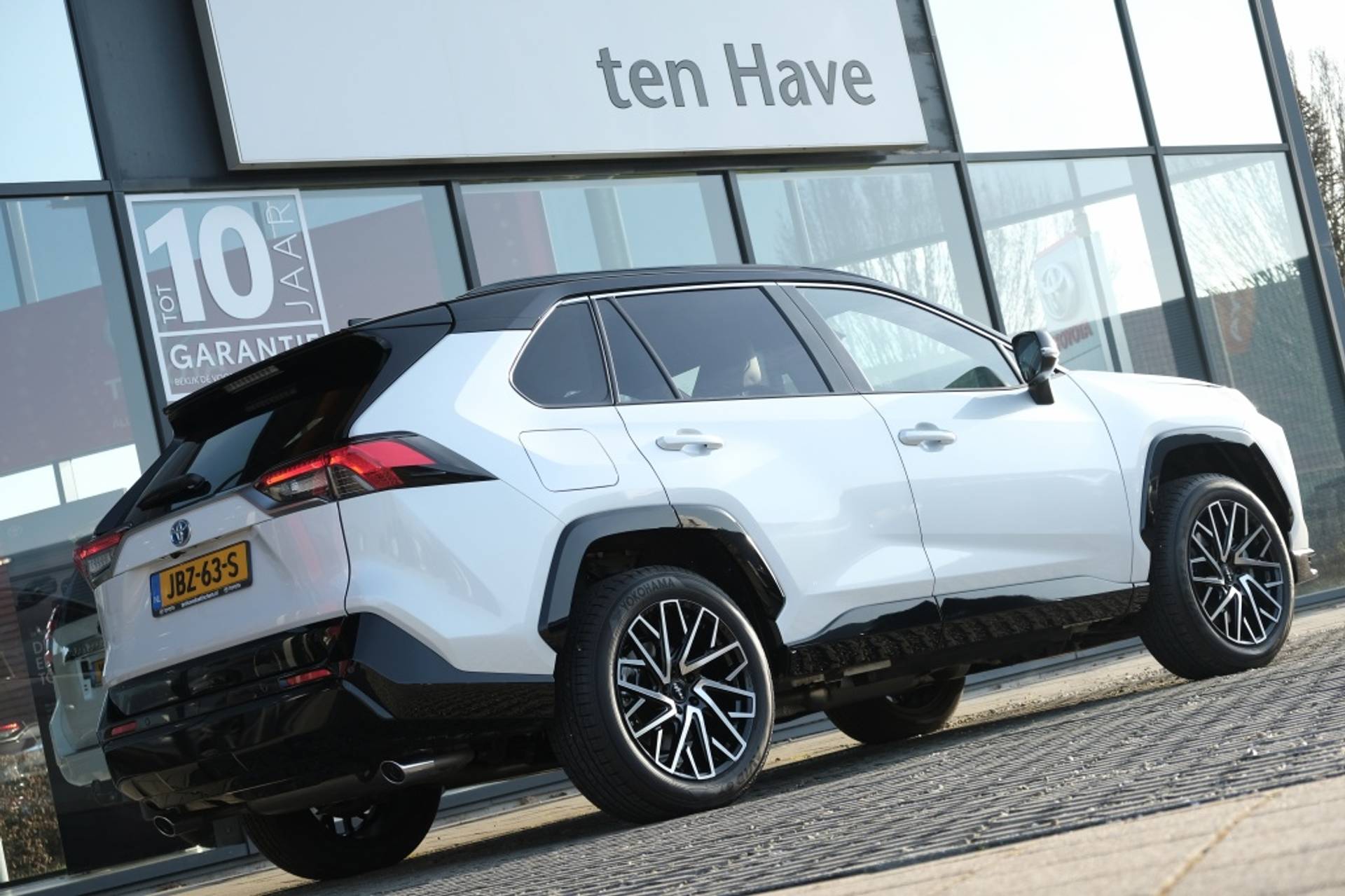 TOYOTA RAV4 Plug-in Hybrid 300 Style Automaat | Apple Carplay / Android auto | Smart Entry | Zwarte 19” gepolijste lichtmetalen velgen | 2x USB-C-aansluitingen in opbergvak onder middenarmsteun | Bekleding, zwart met rode accenten en kunstlederen zijwangen met rode stiksels | Schakelflippers achter stuurwiel | Elektrisch bedienbare achterklep met geheugenfunctie, uitschakelbaar | Metallic lak | Buitenspiegels elektrisch verstelbaar, verwarmbaar, automatisch inklapbaar met geïntegreerde richtingaanwijzers | Dagrijverlichting LED | In hoogte verstelbare koplampen, automatisch | LED achterlichten | LED mistlampen vóór | LED projector koplampen | Parkeersensoren voor en achter | Privacy Glass achter | Roofrails | Ruiten bestuurder en passagier van waterafstotend glas | Smart Entry | Smart Key met bewegingssensor en bediening voor Climate Control | Voorruit met geluidswerend glas | Wielkastbeschermers en onderste deel bumpers voor, zij- en achterkant zwart metallic (218) | Achterbank 60:40 neerklapbaar met instelbare rugleuning, neerklapbare middenarmsteun | Airconditioning, Climate Control, links/rechts gescheiden klimaatzones | Automatisch dimmende binnenspiegel | Bekleding, zwart stof met rode stiksels | Dorpellijsten voorzijde | Intelligent Full Range Adaptive Cruise Control met Speed Limiter | Laadkabel mode 3 - 7,5m | Opbergtas voor laadkabel | Laadvloerbescherming | Ramen voor en achter elektrisch bedienbaar met auto op en neer, klembeveiliging en verlichte knoppen | Stoel bestuurder elektrisch verstelbaar incl. hoogteverstelling (8-weg) | Stoelverwarming op beide voorstoelen en achterbankverwarming | Stuurwiel in hoogte en lengte verstelbaar met knoppen voor o.a. audio-, telefoonbediening, voice | 7 airbags | ABS met Brake Assist | Alarm | AWD Integrated Management System met o.a. Trail Mode | Follow-me-home verlichting | ISOfix kinderstoelbevestiging achter, 2x | Lichtsensor (automatische verlichting) | Regensensor | Toyota Safety Sense 2: Intelligent Adaptive Cruise Control, Pre-Collision System met voertuig, fietsers (dag) en voetgangers (dag+nacht) detectie, Automatic High Beam, Road Sign Assist, Lane Departure Alert, Lane Trace Assist en vermoeidheidsherkenning | Trailer Sway Control | VSC, TRC en HAC | 12.3 inch volledig digitaal instrumentenpaneel | Apple CarPlay® (draadloos) & Android Auto™ (bedraad)* | Connected en remote services* | eCall systeem | Parkeerhulpcamera achter met breedbeeld functie en instelbare dynamische hulplijnen | 1x USB-aansluiting voor, 2x USB-C achterop middenconsole | 6 speakers | Bluetooth® systeem | Cloud navigatie* | Toyota Smart Connect multimediasysteem met 10.5 inch touchscreen* | Radio met DAB+ tuner | 225/60R18 banden | Donkergrijze 18” gepolijste lichtmetalen velgen | Thuiskomer | Tot 10 jaar garantie |