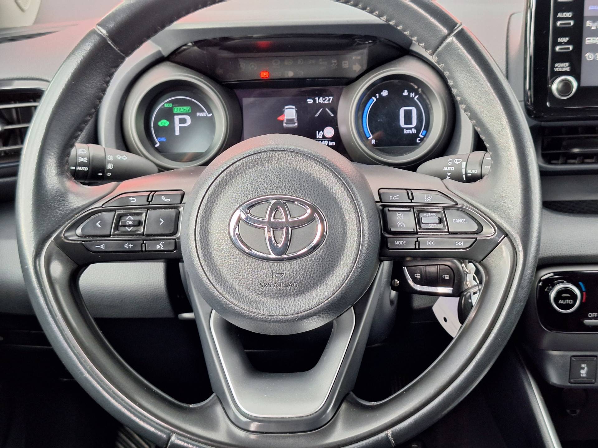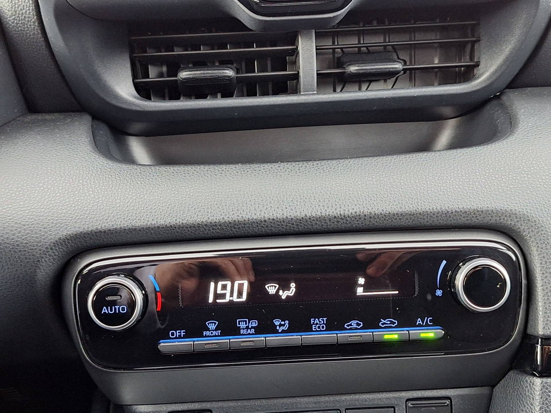 Een onopvallend paaltje of een overstekend kind achter de auto brengt risico's met zich mee. Gelukkig laat de achteruitrijcamera feilloos zien of alles veilig is. Adaptive cruise control is een comfortabele en veilige optie. Het systeem reguleert de snelheid en houdt automatisch afstand tot uw voorligger. . De auto is ook uitgevoerd met automatische airconditioning. Alle belangrijke audiofuncties heeft u onder handbereik met de audiobediening op het stuur. Deze Toyota is voorzien van DAB ontvangst, regensensor, lederen stuur en lederen versnellingspook.