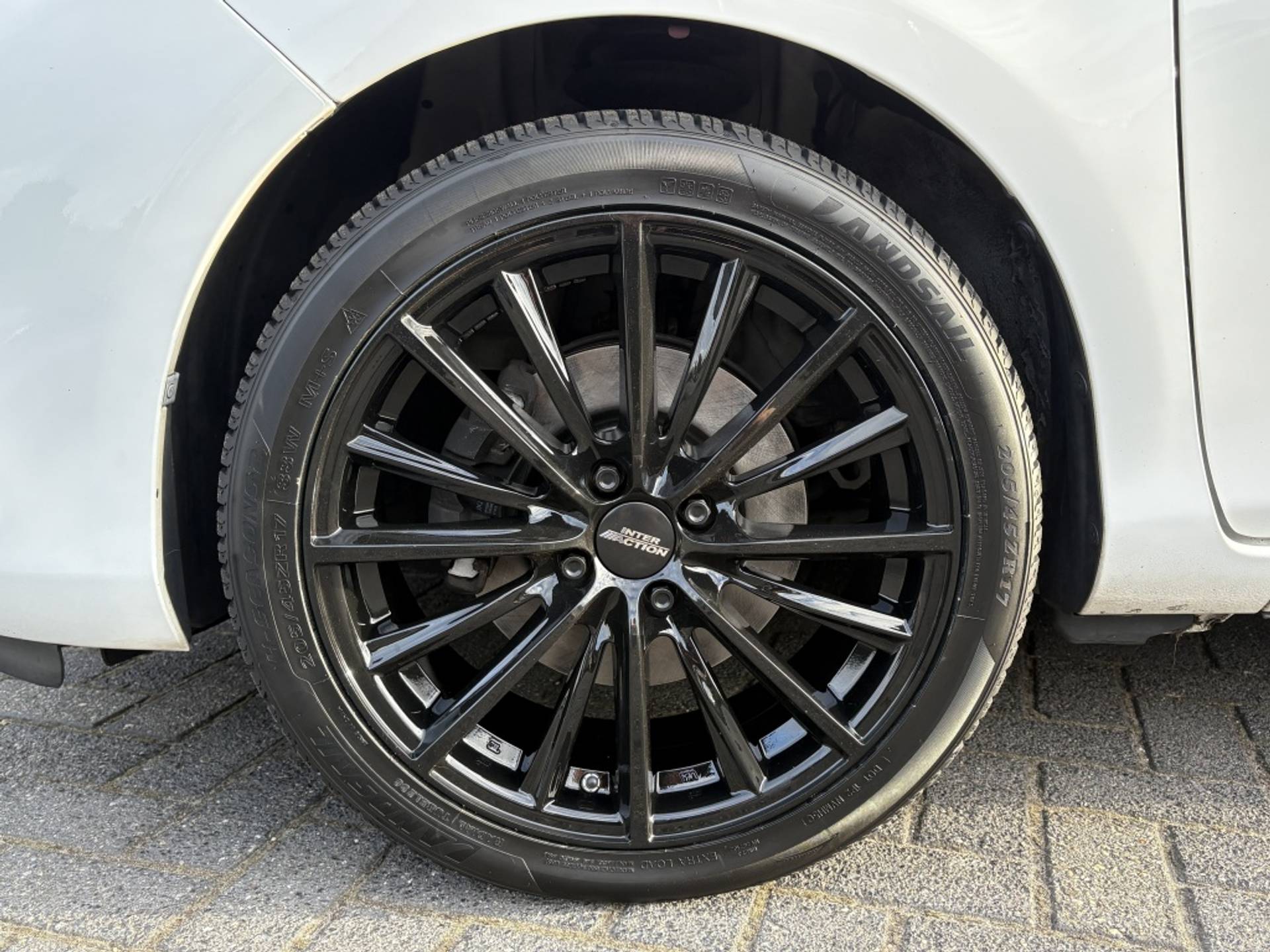 Deze auto staat op 4 nieuwe allseason banden en 4 nieuwe zwarte 17 Inch lichtmetalen velgen. Onbeschadigd dus.
