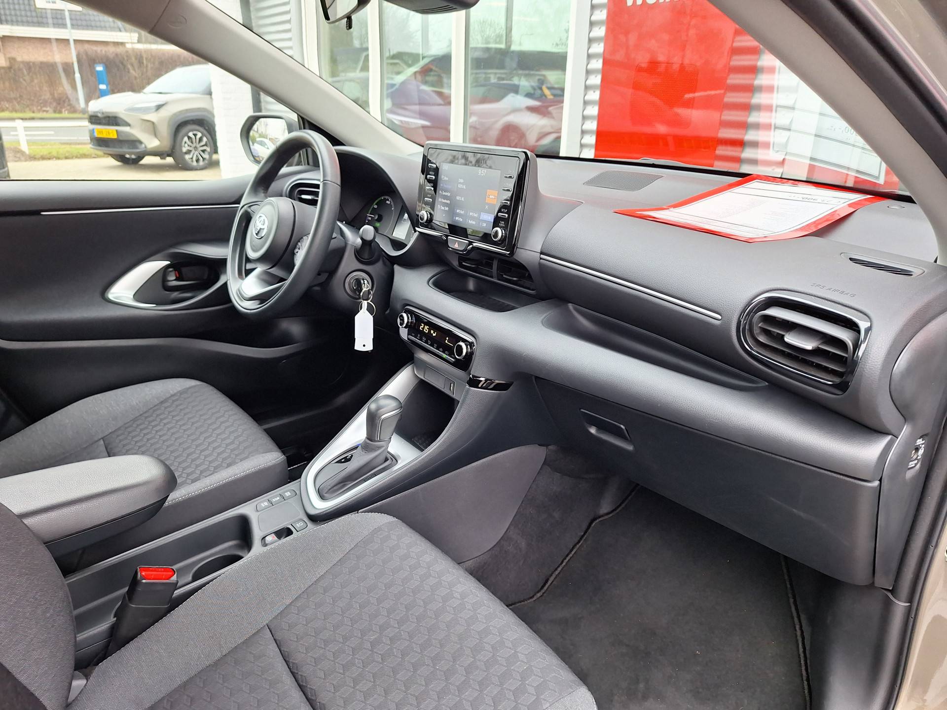 Zodra u naar de 'R' schakelt, gaat de achteruitrijcamera in werking en heeft u een perfect zicht op alles wat zich achter de auto afspeelt. Met adaptive cruise control houdt deze auto automatisch afstand tot uw voorligger. Als u 'm vraagt 'hoe gaat het?' geeft deze auto zelf het antwoord. Via de app op uw smartphone. U checkt de meters waar u maar wilt, of activeert diverse functies alvast. In deze Yaris vindt u schakelaars op het stuur om het audiosysteem met dab-ontvangst te bedienen. Natuurlijk is er ook automatische airconditioning aanwezig. En dan is deze auto ook nog eens voorzien van regensensor, buitentemperatuurmeter, lederen stuur, centrale deurvergrendeling met afstandsbediening en lederen versnellingspook.