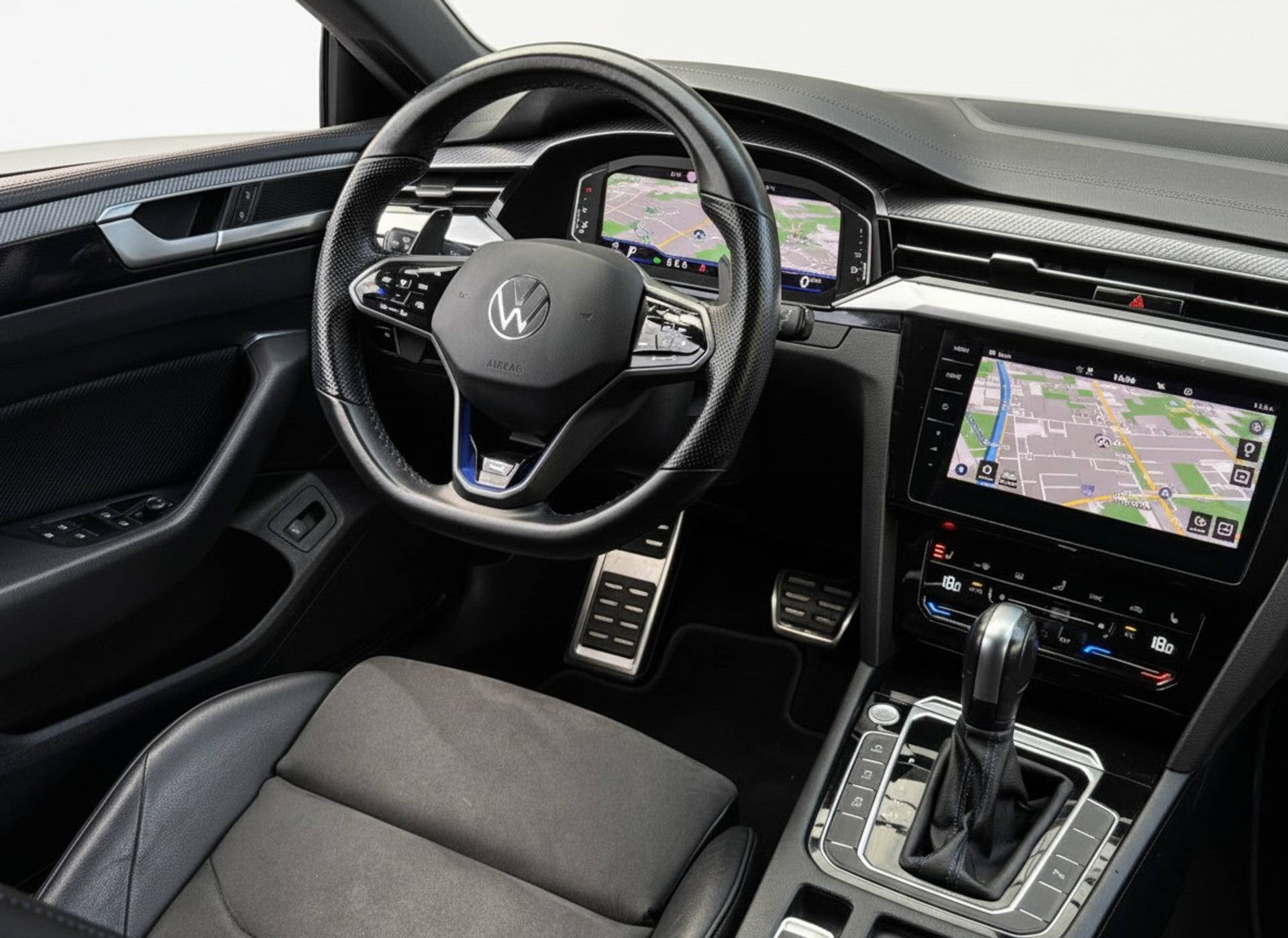 Deze Arteon R Shooting Brake is uitgerust met onder andere: Volledig digitaal instrumentenpaneel, entertainment systeem/bluetooth/audio, Apple carplay Android auto, R-sport half-lederen half-alcantara stoelen, stuurwiel verwarming, verwarmde achterbank, multifunctioneel R-sport stuurwiel, automatische airco, cruise-control adaptief, LED verlichting met LED koplampen, parkeersensoren voor en achter, Driving-profiles incl RACE-modus, buitenspiegels elektrisch inklapbaar. achterklep elektrisch bedienbaar, zwarte hemelbekleding, 20inch lichtmetalen Volkswagen R wielen, elektrisch verstelbare bestuurdersstoel met massage, etc..