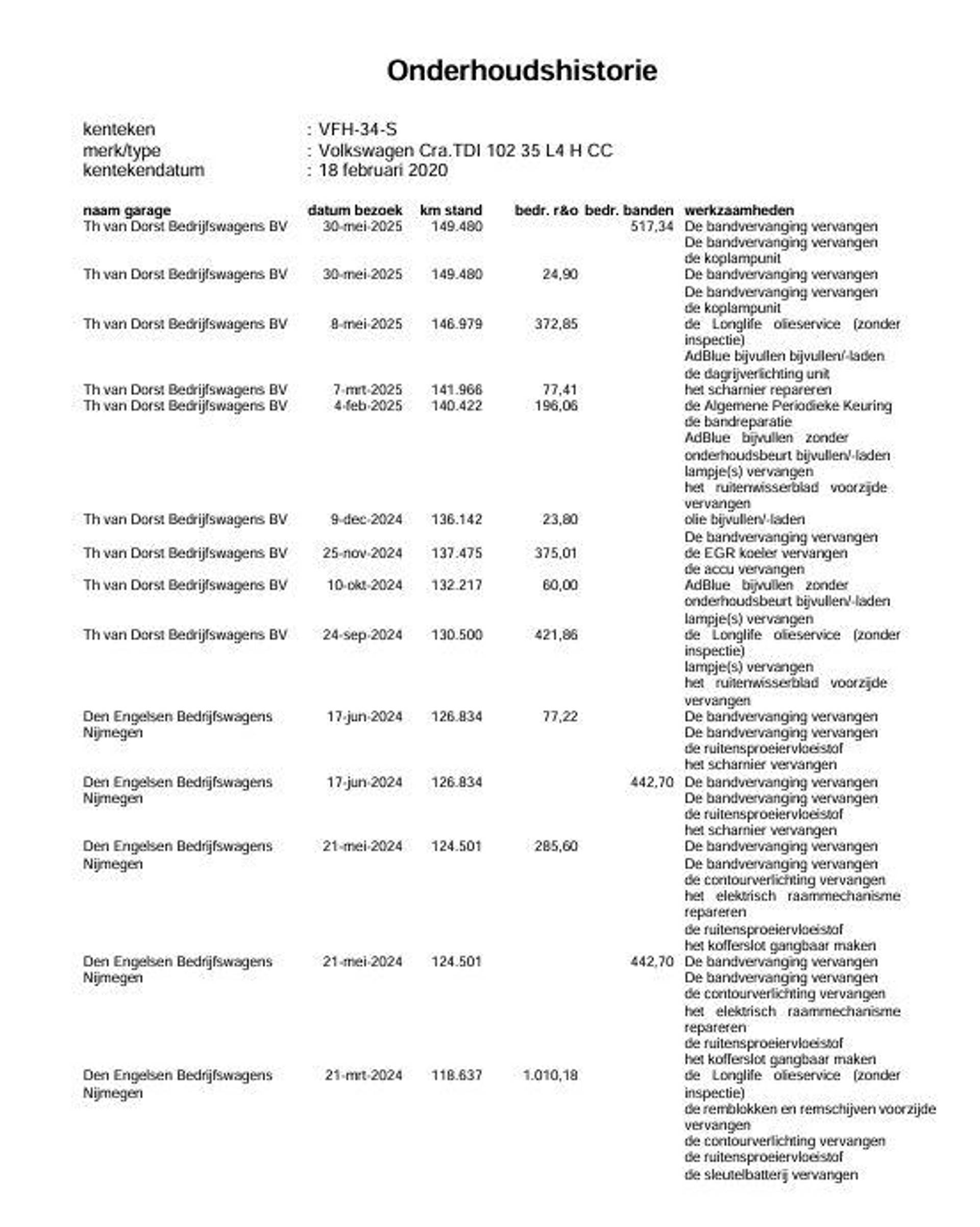 ✓ Onderhoudsboekje (fysiek)