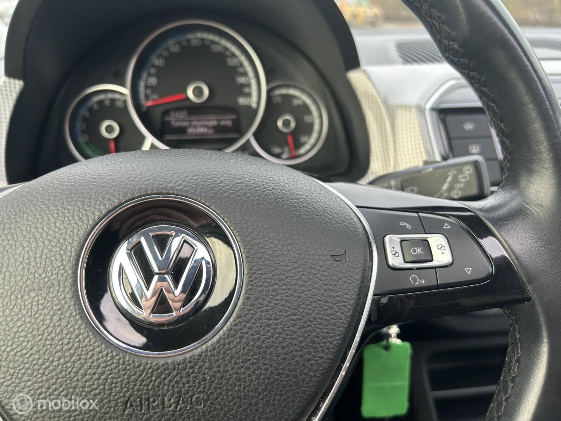 Kinderfietsje niet gezien bij het inparkeren? Dat gebeurt u nooit meer. Daar zorgt de achteruitrijcamera wel voor! Ook over uw schouder ziet u onderweg niet alles wat er aan de achterzijde gebeurt. Daarom heeft deze Volkswagen e-Up! een achteropkomend verkeer waarschuwing. U verwacht natuurlijk automatische airconditioning in deze auto, en die is er dan ook. Geniet van een ruime selectie digitale radiostations met de DAB-ontvanger. Achter het stuur van deze Volkswagen bent u niet alleen. De auto kijkt als het ware met u mee tijdens de rit. De regensensor schakelt de ruitenwissers in als het nodig is en de automatisch inschakelbare verlichting doet de lichten voor u aan. U bent in deze Volkswagen ook voorzien van lederen stuur, centrale deurvergrendeling met afstandsbediening, boordcomputer en lederen versnellingspook.