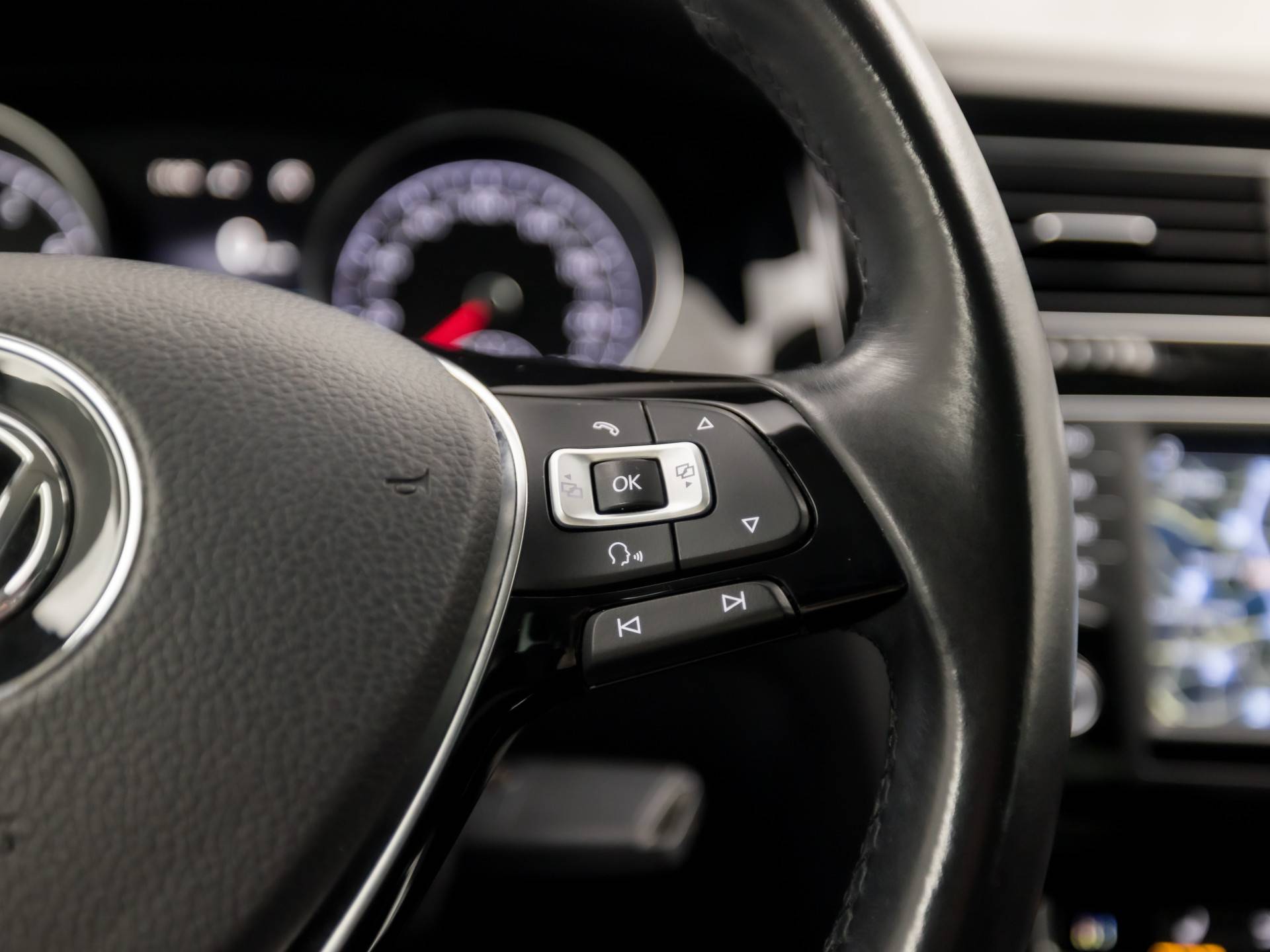 Intelligente spraakbediening herkent uw commando's en voert opdrachten snel en soepel uit. Met de routebegeleiding van het navigatiesysteem met harde schijf kunt u zich volledig op het verkeer concentreren. De automatische airconditioning zorgt onder alle omstandigheden voor een prettige temperatuur. Voor een storingvrije radio-ontvangst zorgt de ingebouwde DAB-ontvanger. Kom-maar-kom-maar...ho! Zo eenvoudig is het voordeel van parkeersensoren. En zo behulpzaam! Deze Volkswagen is voorzien van multifunctioneel lederen stuur, regensensor, cruise control, automatisch dimmende binnenspiegel, isofix-aansluiting en centrale deurvergrendeling met afstandsbediening.
