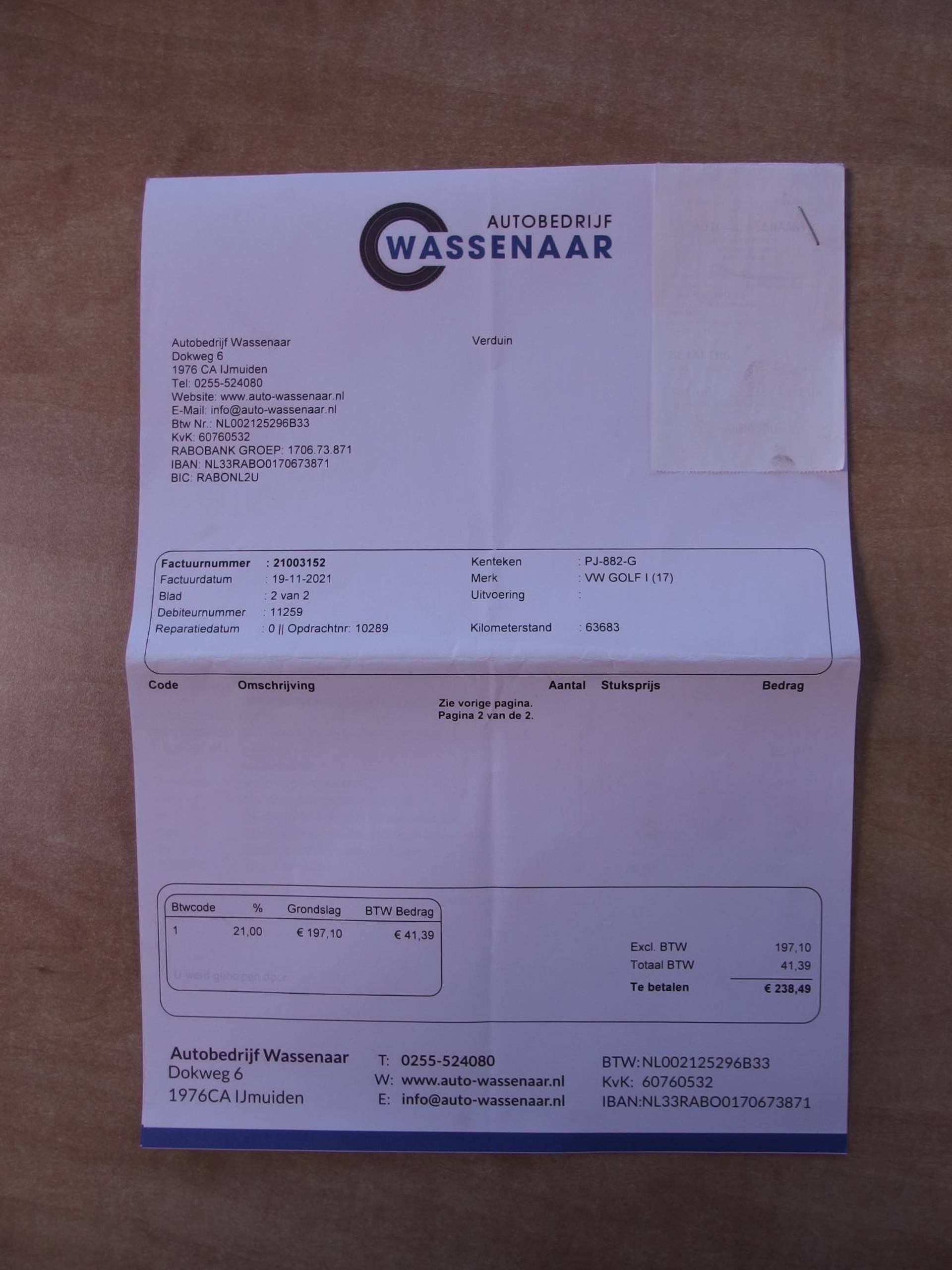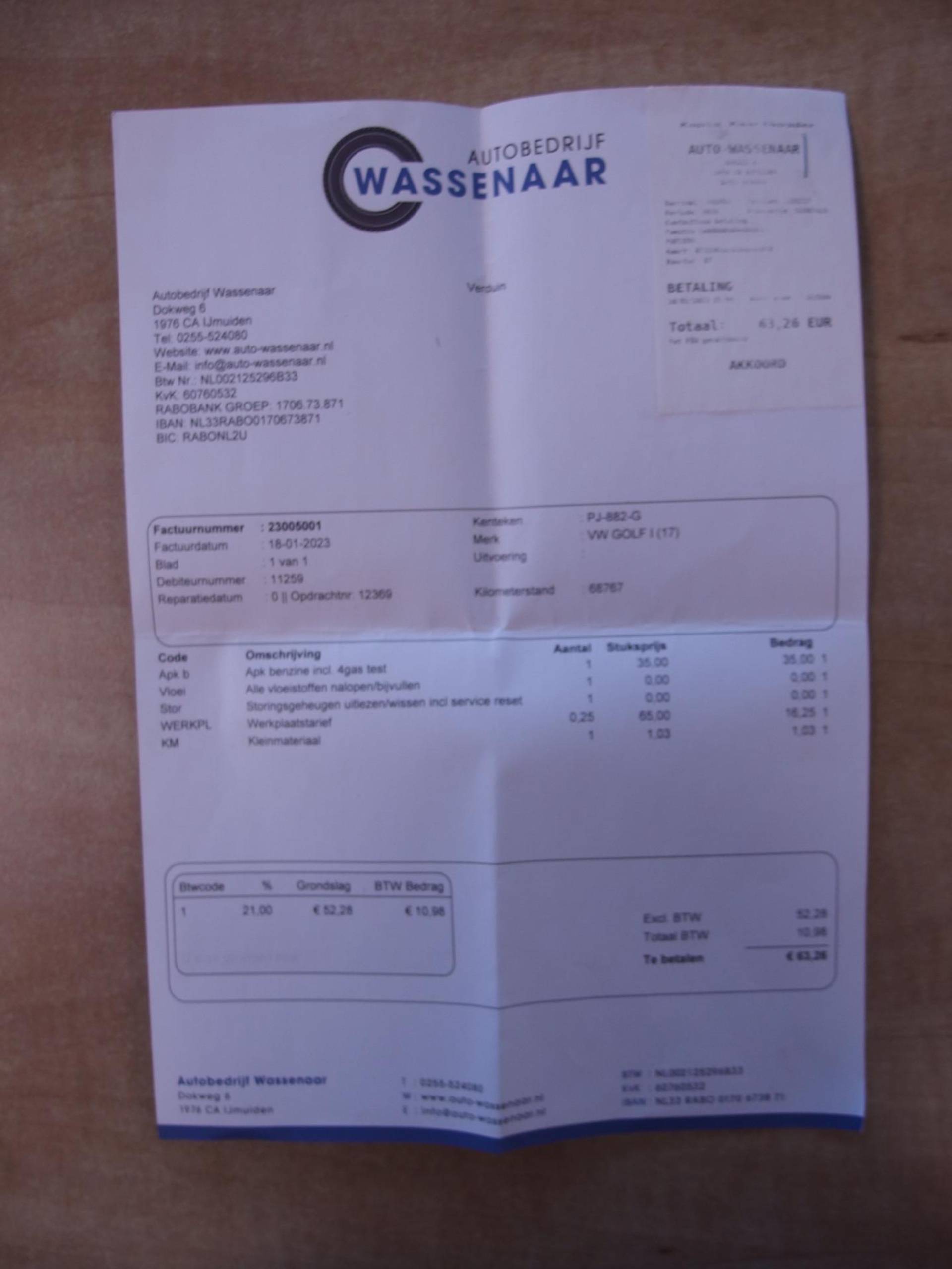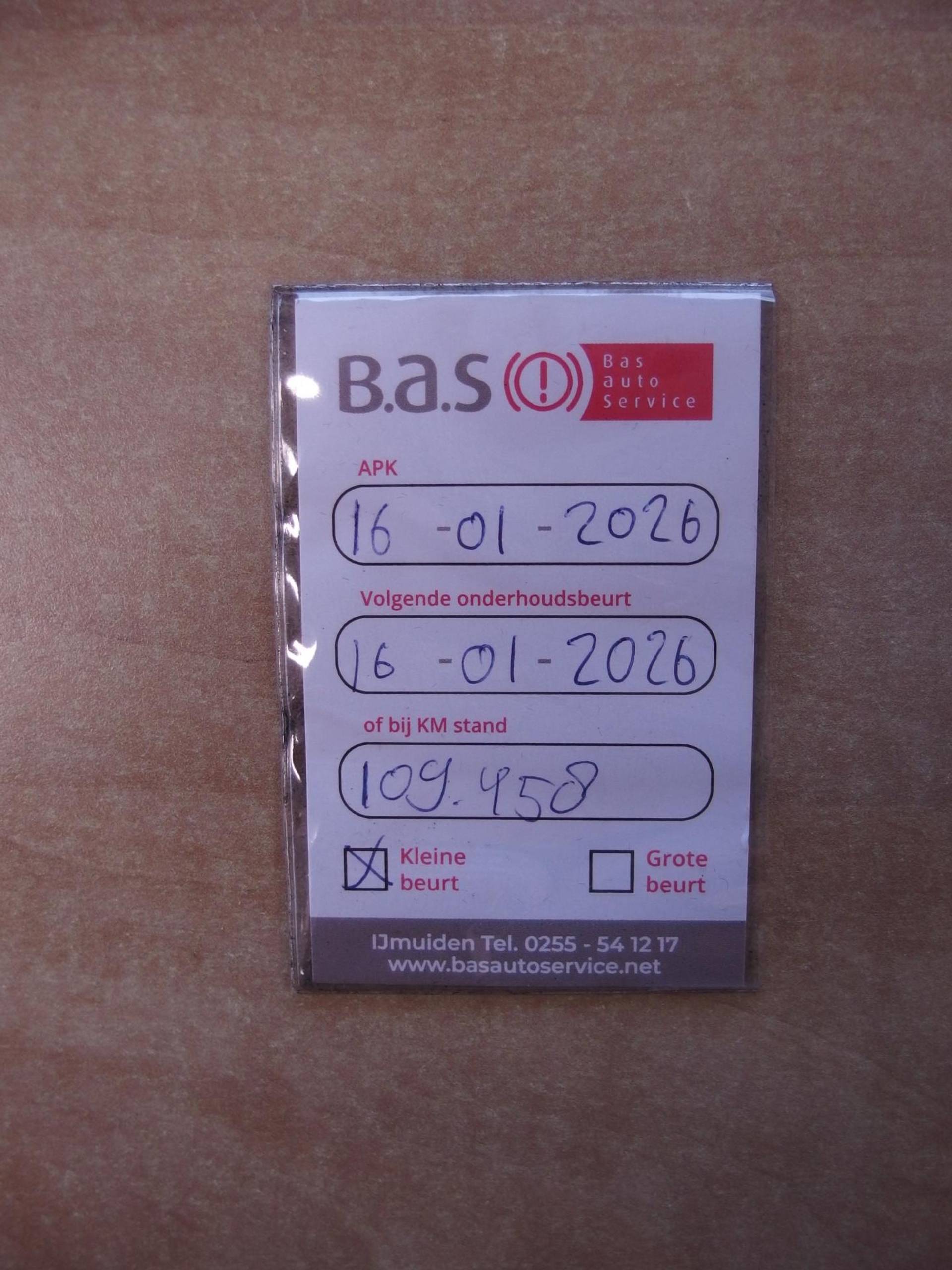 ✓ APK bij aflevering: J