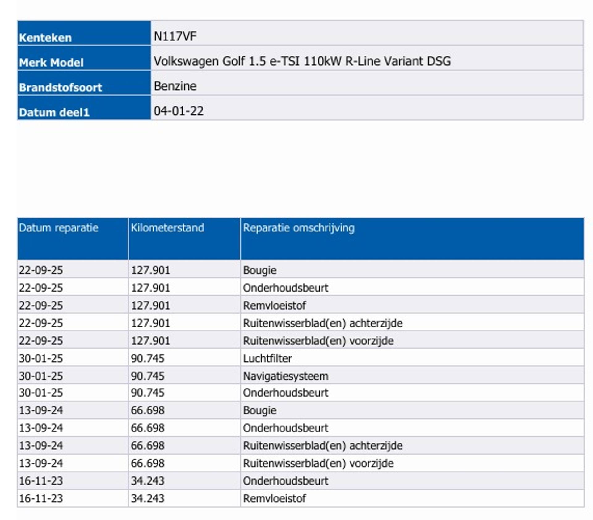 * Nieuwe APK keuring * Onderhoudsbeurt volgens fabrieksopgave ( wanneer nodig ) * Controle distributieriem , vervanging tegen meerprijs. * Voertuig wordt schoon afgeleverd * Technische controle * Kentekenregistratie * Vrijwaren inruilauto * 12 maanden garantie of een maximum van 20.000 kilometer