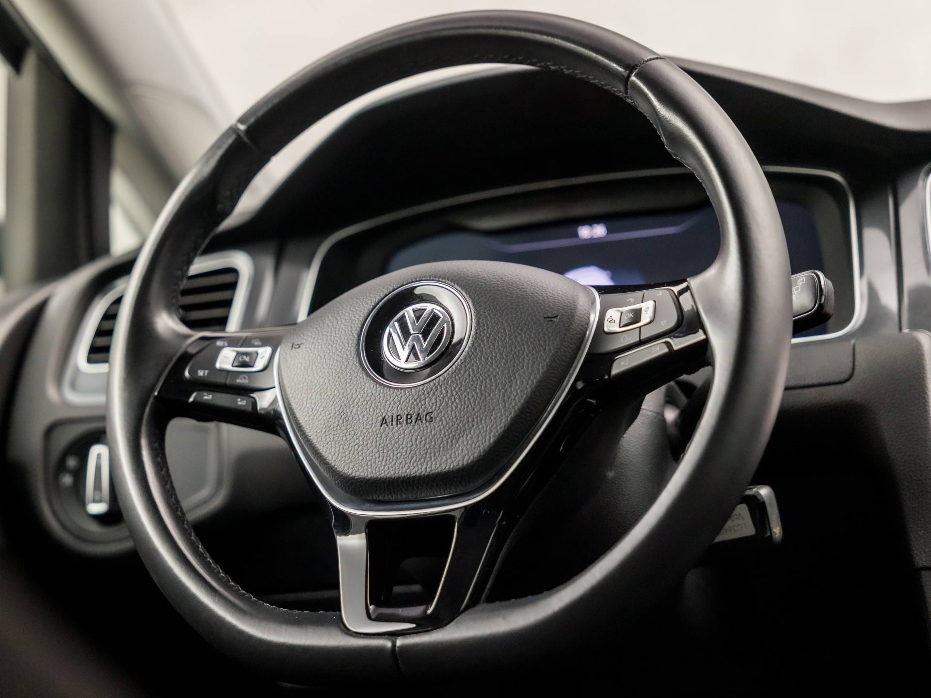 Alle ritinformatie en communicatie is gebundeld in één overzichtelijk digitale dashboard. De radio harder of zachter zetten of iemand uit uw contactenlijst bellen. Dankzij de spraakbediening doet u dit allemaal met uw stem. Deze auto kent elke bestemming als z'n broekzak, dankzij het navigatiesysteem. Te weinig afstand tussen u en de achterligger? De sensoren registreren het direct en de achteropkomend verkeer waarschuwing geeft een signaal. Automatische airconditioning regelt volautomatisch de temperatuur. U kiest de gewenste temperatuur en het systeem doet de rest. De Volkswagen is standaard voorzien van: DAB ontvangst, parkeersensoren voor en achter, regensensor, cruise control, automatisch dimmende binnenspiegel en lederen stuur.