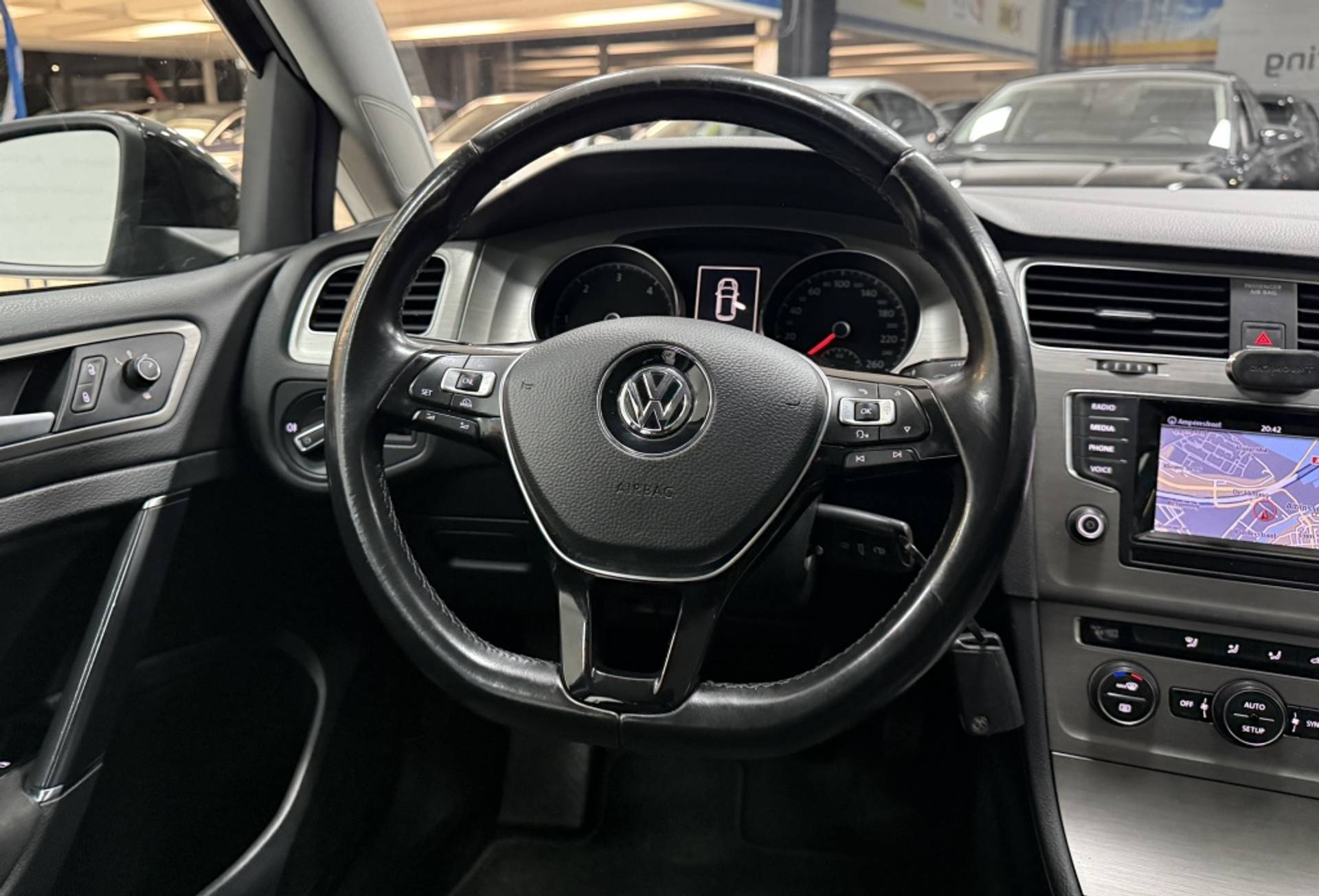 Laat u onderweg niet afleiden, de bediening van het audio-installatiesysteem gaat met knoppen op het stuur. Electronic climate control regelt volautomatisch de temperatuur. U kiest de gewenste temperatuur en het systeem doet de rest. Liever gepiep dan gekraak? Dan zult u blij zijn met de aanwezige parkeersensoren! Achter het stuur van deze Volkswagen bent u niet alleen. De auto kijkt als het ware met u mee tijdens de rit. De regensensor schakelt de ruitenwissers in als het nodig is en de automatisch inschakelbare verlichting doet de lichten voor u aan. Zuinig en zeker zoeven? Dan is de cruise control ideaal! Wat u ook in deze auto kunt vinden zijn automatisch dimmende spiegels, boordcomputer en verstelbaar stuur.