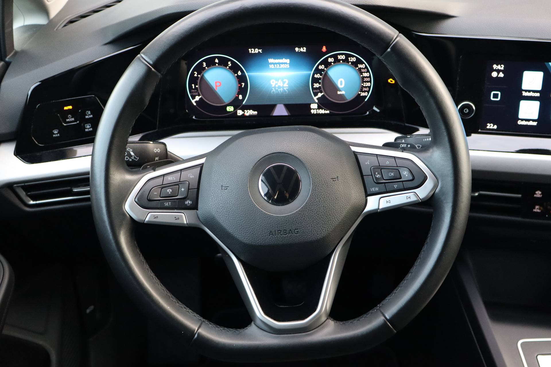 Voor miljoenen bestuurders is er eigenlijk maar één merk: Volkswagen. Zoals het een echte Volkswagen betaamt, verkeert deze Golf in uitstekende conditie. Hij heeft een benzinemotor en een automatische transmissie. Ook is de auto voorzien van: 16 inch lichtmetalen velgen, LED koplampen, trailer assistent, in hoogte verstelbare passagiersstoel, in delen neerklapbare achterbank en LED-achterlichten. Wat ook opvalt, is de strakke en overzichtelijke informatie die het digitale dashboard levert. Met de achteruitrijcamera ziet u wat er achter de auto gebeurt. Zo rijdt u moeiteloos achteruit. Adaptive cruise control is veilig en comfortabel. De snelheidsregelaar houdt automatisch afstand tot het voertuig dat voor u rijdt. Veilig en comfortabel rijden wordt nog eens versterkt door Connected Services, zodat u diverse vitale functies van de auto altijd kunt checken in de app. Te weinig afstand tussen u en de achterligger? De sensoren registreren het direct en de achteropkomend verkeer waarschuwing geeft een signaal. En deze auto heeft ook kruisend verkeer detectie, automatische airconditioning, sportstuur met schakelpaddels, draadloos opladen, keyless entry en centrale deurvergrendeling met afstandsbediening als standaard uitrusting. Pragmatisch en veilig als deze auto is, beschikt hij over diverse veiligheidssystemen. Het Lane-keeping systeem garandeert dat u zich niet onverhoeds buiten de lijnen van de rijstrook begeeft. Het forward collision warning-systeem waarschuwt indien een botsing dreigt met een voorliggend of tegemoetkomend voertuig. Om te voorkomen dat u tijdens lange ritten achter het stuur in slaap valt, is deze auto voorzien van vermoeidheidsherkenning. Met voorzieningen als hill hold functie, autonoom remsysteem en bandenspanningcontrolesysteem, bent u altijd veilig onderweg. Een proefrit levert het overtuigende bewijs. Bel nu!
