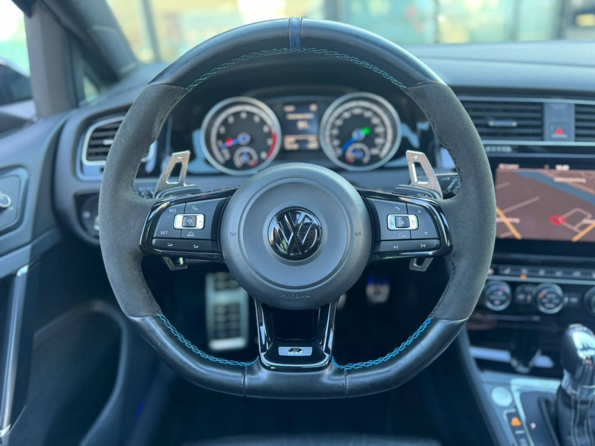 De nieuwste veiligheidssystemen komen in deze Volkswagen Golf samen. Met de vermoeidheidsassistent bent u ook op lange ritten veilig op pad. Het systeem geeft een waarschuwing zodra het tijd is voor een pauze. De hill hold control schakelt zichzelf automatisch in en uit op een helling. Zo rijdt u zelfs op de steilste wegen soepel weg. Wat deze Golf R uniek maakt is de uitgebreide lijst aan upgrades en aanpassingen. Hieronder een overzicht van de uitgevoerde modificaties en extra’s: