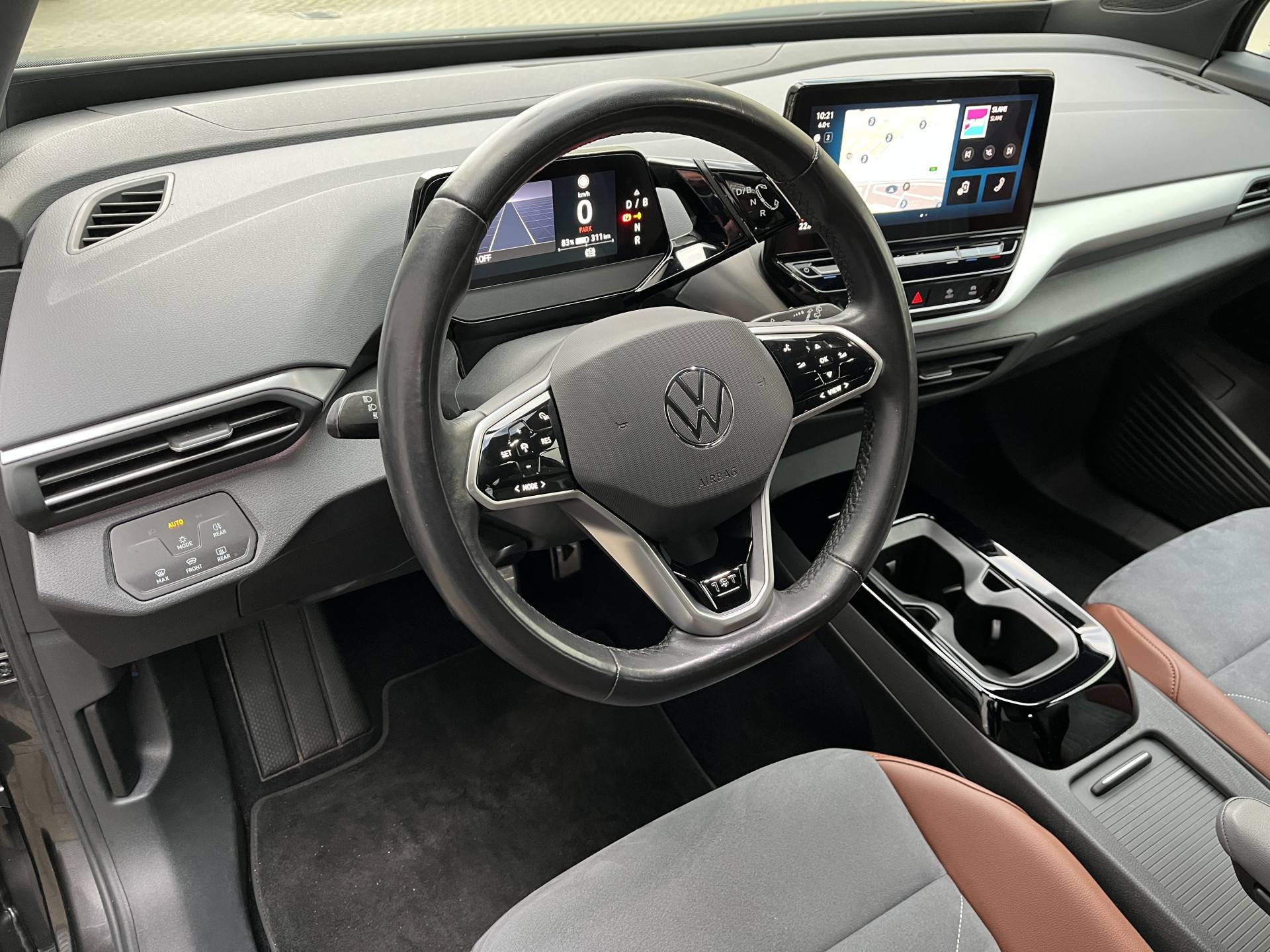 Zoals je mag verwachten van deze Volkswagen ID.4 is hij uitgerust met een reeks aan actieve veiligheidssystemen. In het instrumentarium kun je bovendien de verkeersborden zien die je onderweg tegenkomt. Zo helpt deze Volkswagen jou om veiliger te rijden. Het Lane-keeping systeem let constant op en waarschuwt of corrigeert als je onoplettend over de lijnen van de rijstrook gaat. De sensor van het forward collision warning-systeem registreert permanent de afstand tot voorliggers en grijpt in als een botsing dreigt. De veiligheid van deze auto wordt verder verhoogd door hill hold functie, vermoeidheidsherkenning, autonoom remsysteem en bandenspanningcontrolesysteem.