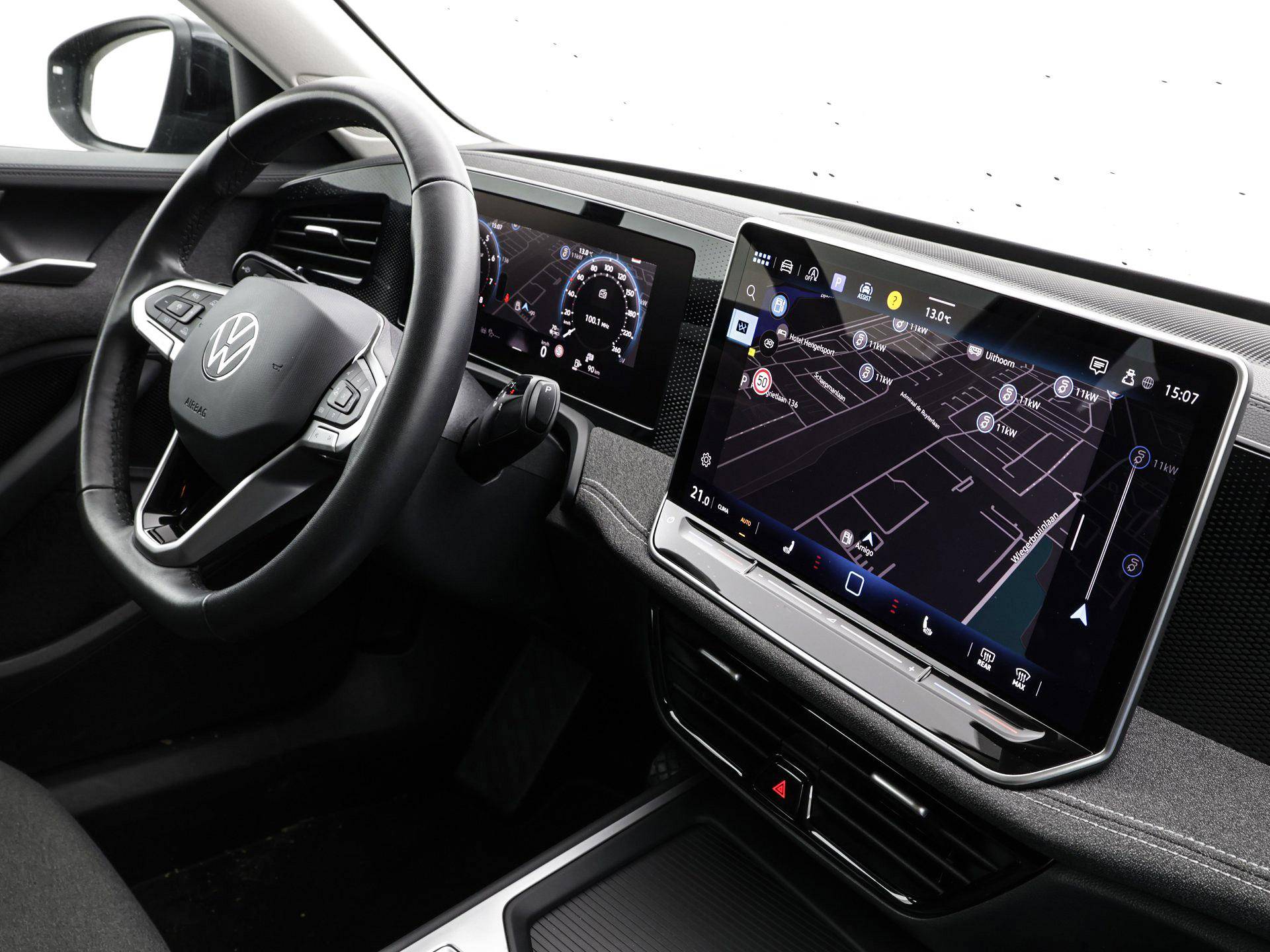 Het digitale dashboard ondersteunt u voortdurend met actuele, bruikbare informatie. Geen nekkramp of spiegelwerk meer bij het achteruitrijden: de achteruitrijcamera kijkt en ziet alles! Adaptive cruise control is veilig en comfortabel. De snelheidsregelaar houdt automatisch afstand tot het voertuig dat voor u rijdt. Ingebouwde spraakbediening maakt het mogelijk om de auto te bedienen zonder dat uw aandacht wordt afgeleid. Met uw smartphone maakt u overal contact met de auto. Remote services geven direct inzicht in uiteenlopende functies en zijn op afstand te activeren. De uitrusting van deze auto is met navigatiesysteem, kruisend verkeer detectie, electronic climate control, draadloos opladen, DAB ontvangst en regensensor behoorlijk compleet.