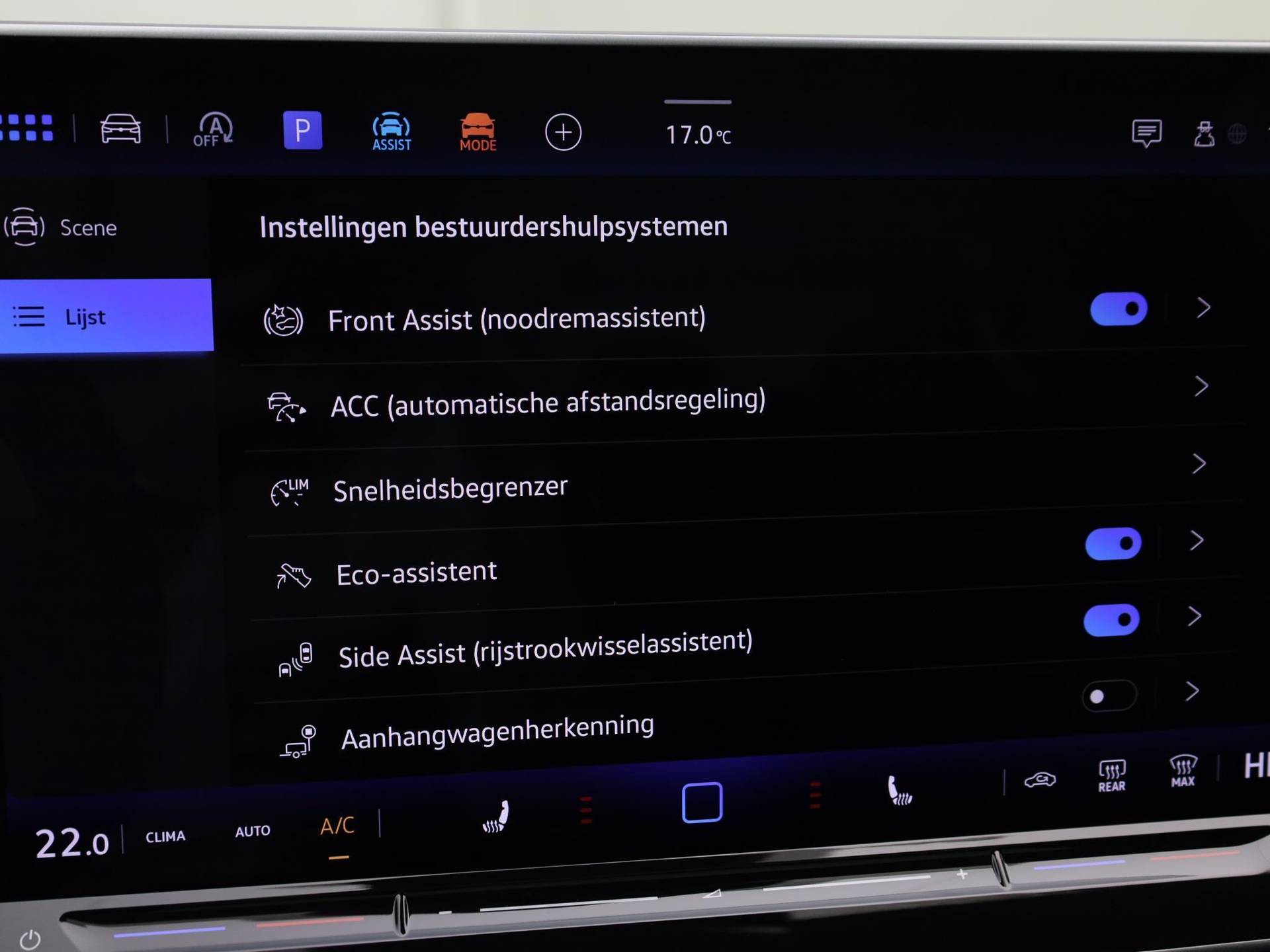 Geavanceerde technische systemen houden tijdens elke rit het verkeer in de gaten en reageren op potentieel gevaarlijke situaties. Hou de weg in het vizier! De head-up display zorgt dat u de dashboardinfo in beeld geprojecteerd krijgt. Dat de auto steeds meer taken van de bestuurder overneemt, merkt u bijvoorbeeld aan het systeem voor verkeersbord-detectie in deze Volkswagen. Indien u onbedoeld de rijstrook lijkt te verlaten, reageert het Lane-keeping systeem meteen en corrigeert. Met voorzieningen als dodehoekdetectie, forward collision warning system, hill hold functie, vermoeidheidsherkenning, frontale botsbescherming en bandenspanningcontrolesysteem, bent u altijd veilig onderweg.