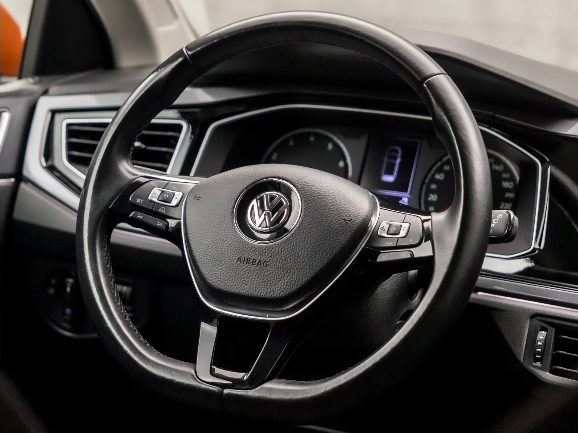 Adaptive cruise control is veilig en comfortabel. De snelheidsregelaar houdt automatisch afstand tot het voertuig dat voor u rijdt. Als u regelmatig met een aanhanger of een fietsendrager op pad bent, is de afneembare trekhaak een praktische extra. Deze Volkswagen is voorzien van spraakbediening voor het full map navigatiesysteem en voor het audio-installatiesysteem. Maar u kunt ook de knoppen op het stuur gebruiken. Ook over uw schouder ziet u onderweg niet alles wat er aan de achterzijde gebeurt. Daarom heeft deze Volkswagen Polo een achteropkomend verkeer waarschuwing. Dankzij automatische airconditioning is het interieur behaaglijk warm of verfrissend koel. Wat u ook in deze auto kunt vinden zijn parkeersensoren voor en achter, sportstuurwiel, isofix-aansluiting, centrale deurvergrendeling met afstandsbediening, boordcomputer en lederen versnellingspook.