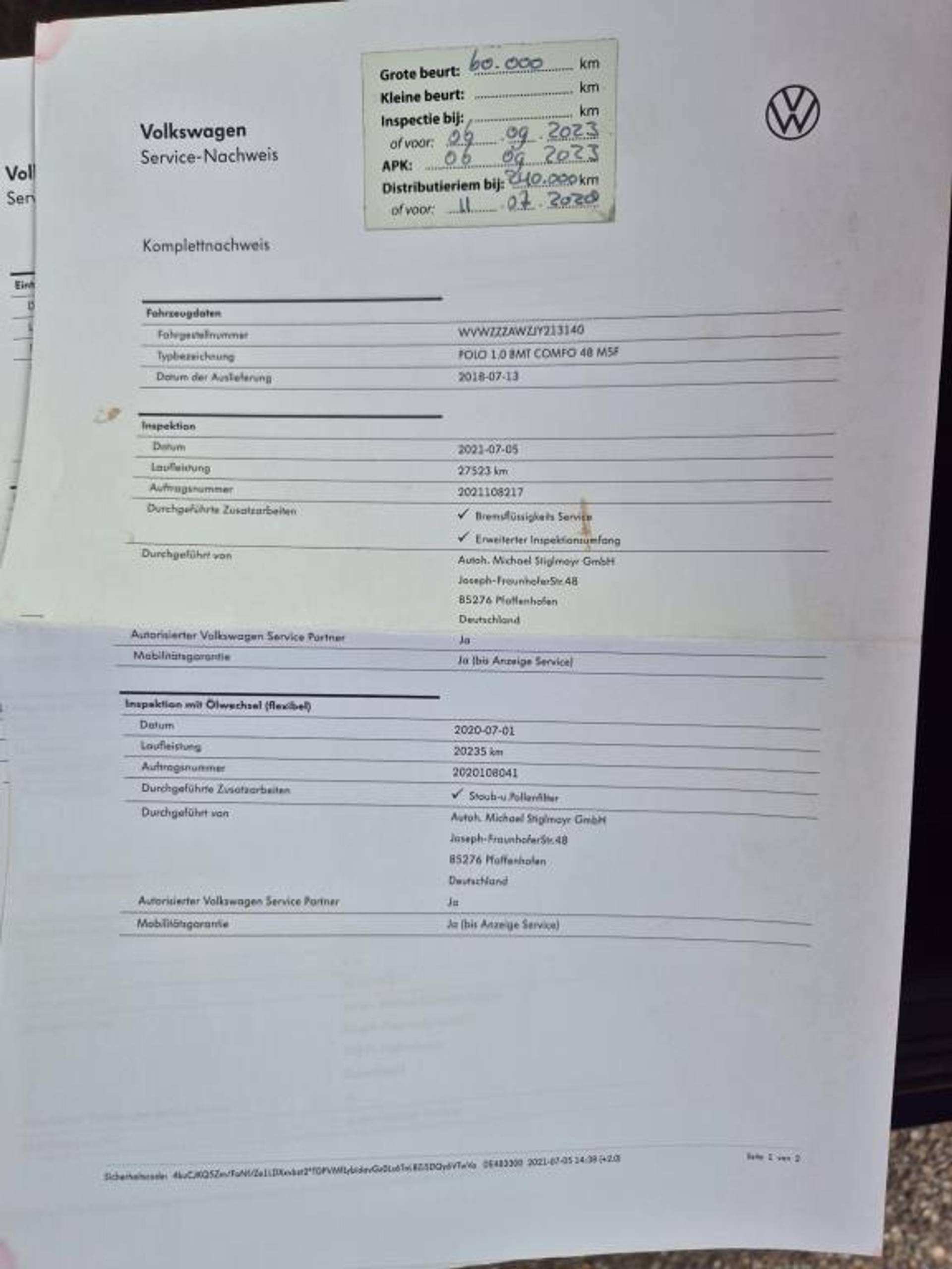 APK: Nieuwe APK bij aflevering