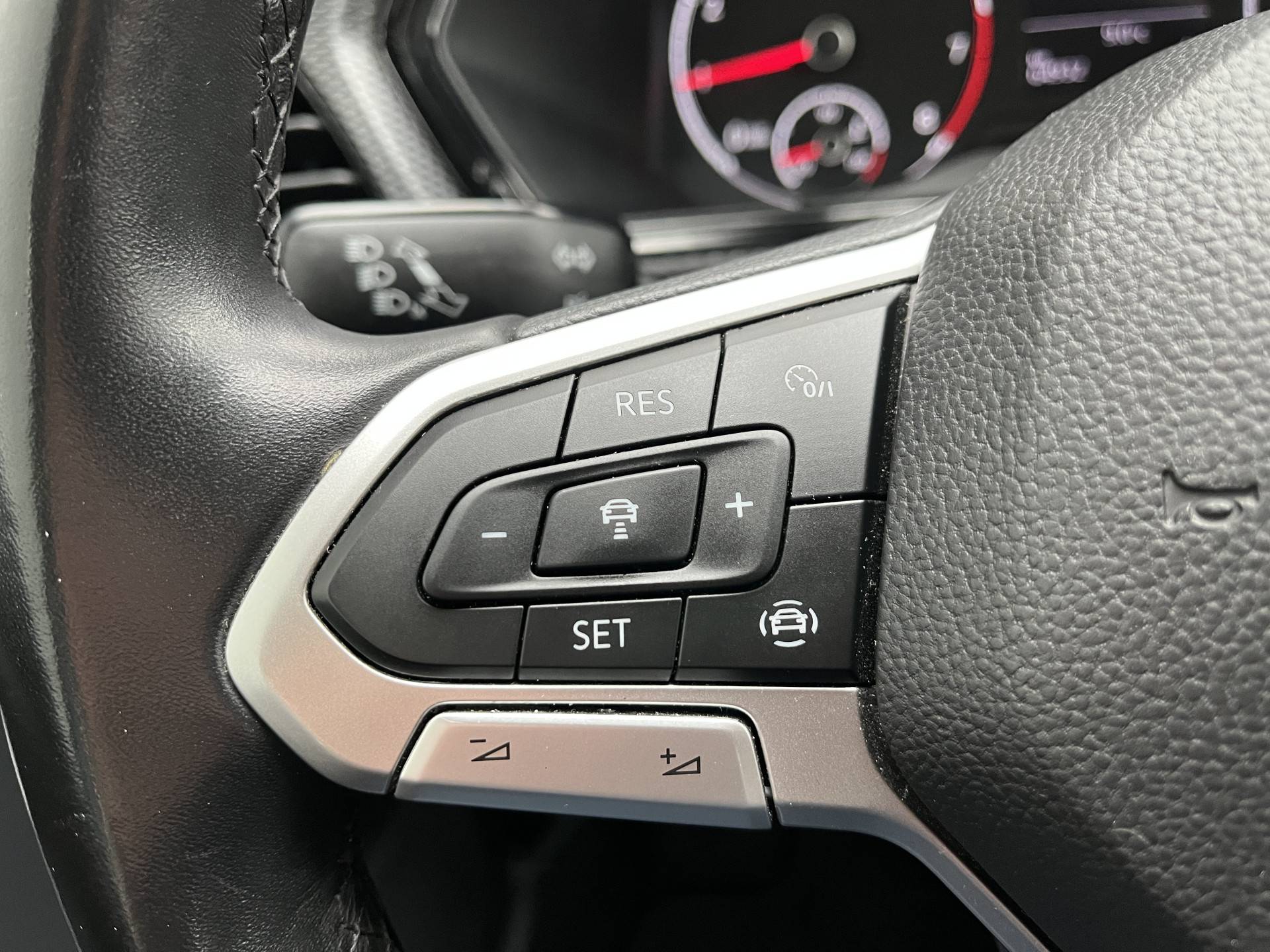 Adaptive cruise control is een comfortabele en veilige optie. Het systeem reguleert de snelheid en houdt automatisch afstand tot jouw voorligger. Appen met je auto? Geen probleem. Je kunt van overal contact opnemen, de functies controleren en activeren. Je bedient 'm met remote services. Je kunt tijdens de rit jouw ogen steeds op de weg houden, want het audio-installatiesysteem (met DAB!) en het full map navigatiesysteem kun je bedienen vanaf het stuur of met spraak. De automatische airconditioning zorgt voor een prettige binnentemperatuur. Je kunt bij het inparkeren natuurlijk niet aan alle kanten ogen hebben. Daarom is deze Volkswagen T-Cross voorzien van parkeersensoren! De Volkswagen is standaard voorzien van: lederen stuur, centrale deurvergrendeling met afstandsbediening, boordcomputer en lederen versnellingspook.