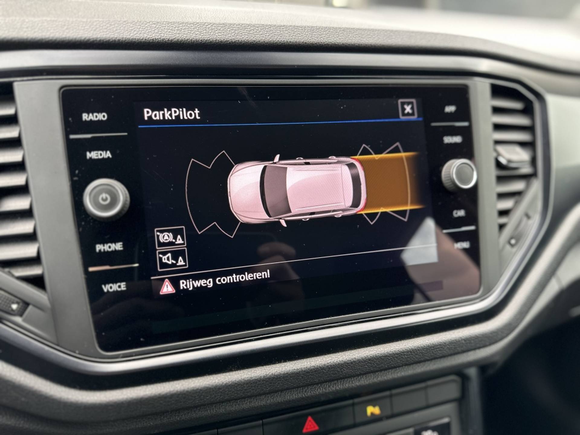 PDC parkeersensoren voor en achterzijde met parkeerhulp op beeldscherm,