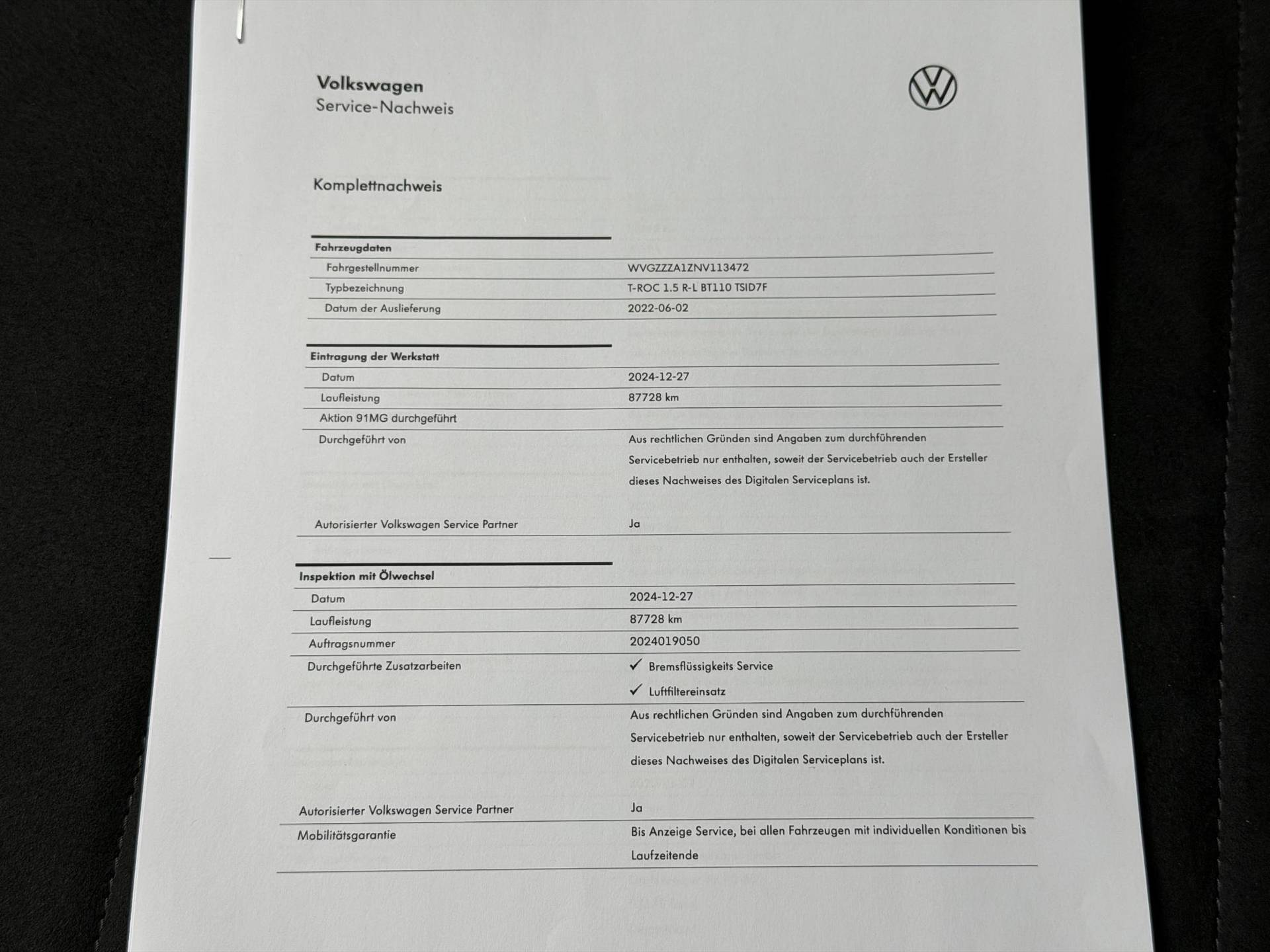 ✓ Onderhoudsboekje (digitaal)