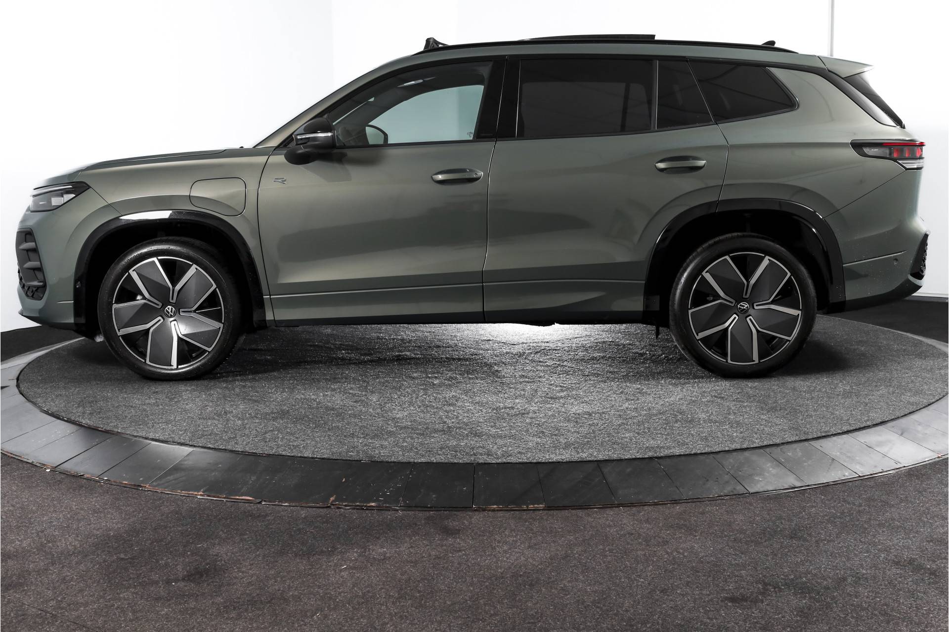Deze Tayron combineert het comfort van de plug-in hybride aandrijflijn met de sportieve uitstraling van de R-Line Exterieur en het Black Style Pakket, waarbij onder andere de buitenspiegels en diverse exterieuraccenten in zwarte hoogglans zijn uitgevoerd. Dit geeft de auto een strakke, eigentijdse uitstraling zonder overdreven sportief te worden.