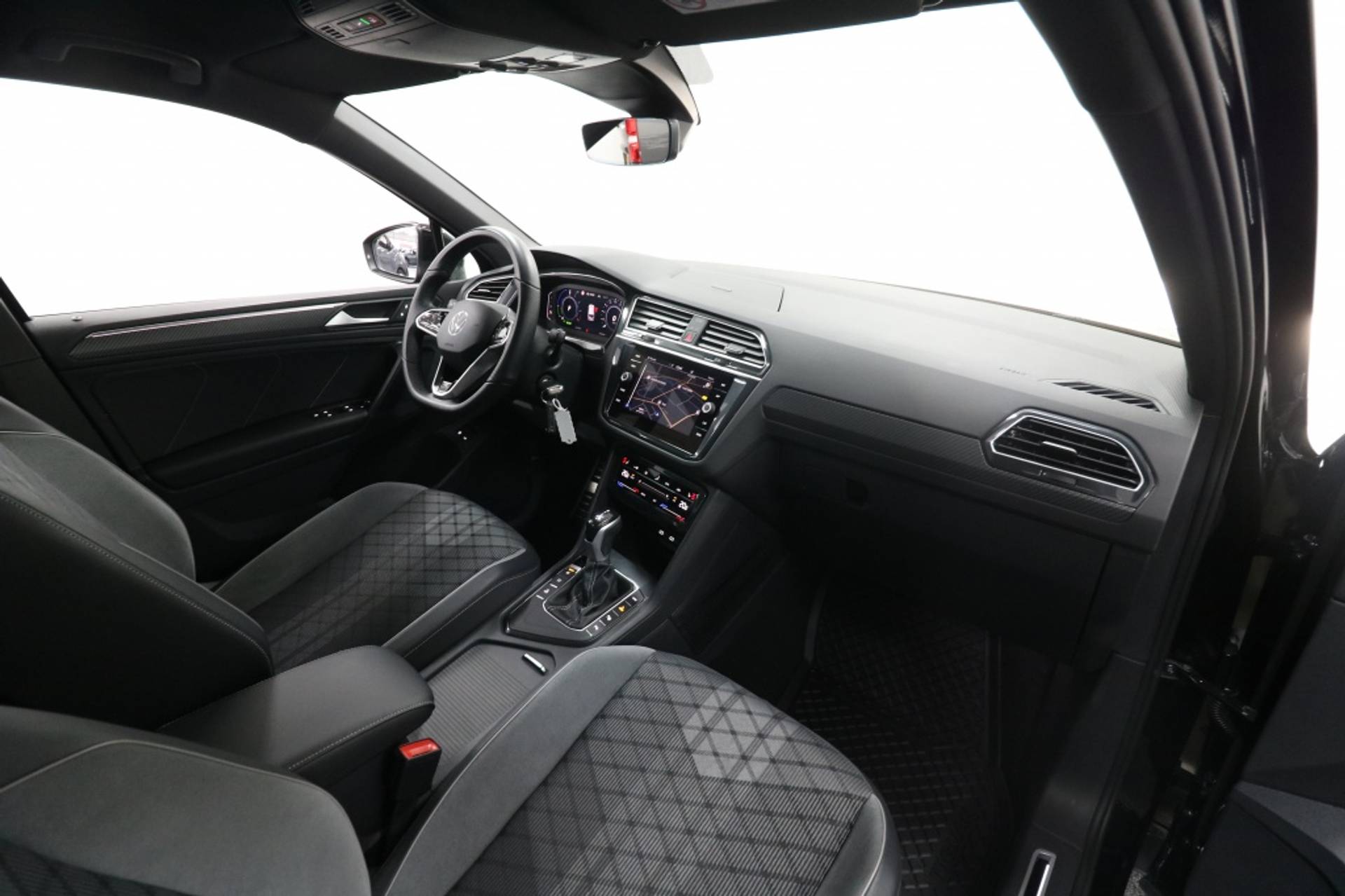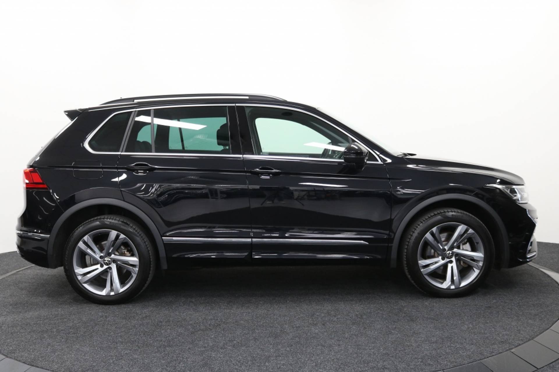 Met zijn 5 deuren en ruime carrosserie is deze SUV ideaal voor gezinsuitjes of lange roadtrips. De lichtmetalen velgen van 19" voegen niet alleen een sportief element toe aan het exterieur, maar zorgen ook voor een soepele en stabiele rijervaring. Het R-Line exterieurpakket geeft de Tiguan een extra dynamische uitstraling die zijn sportieve karakter benadrukt.