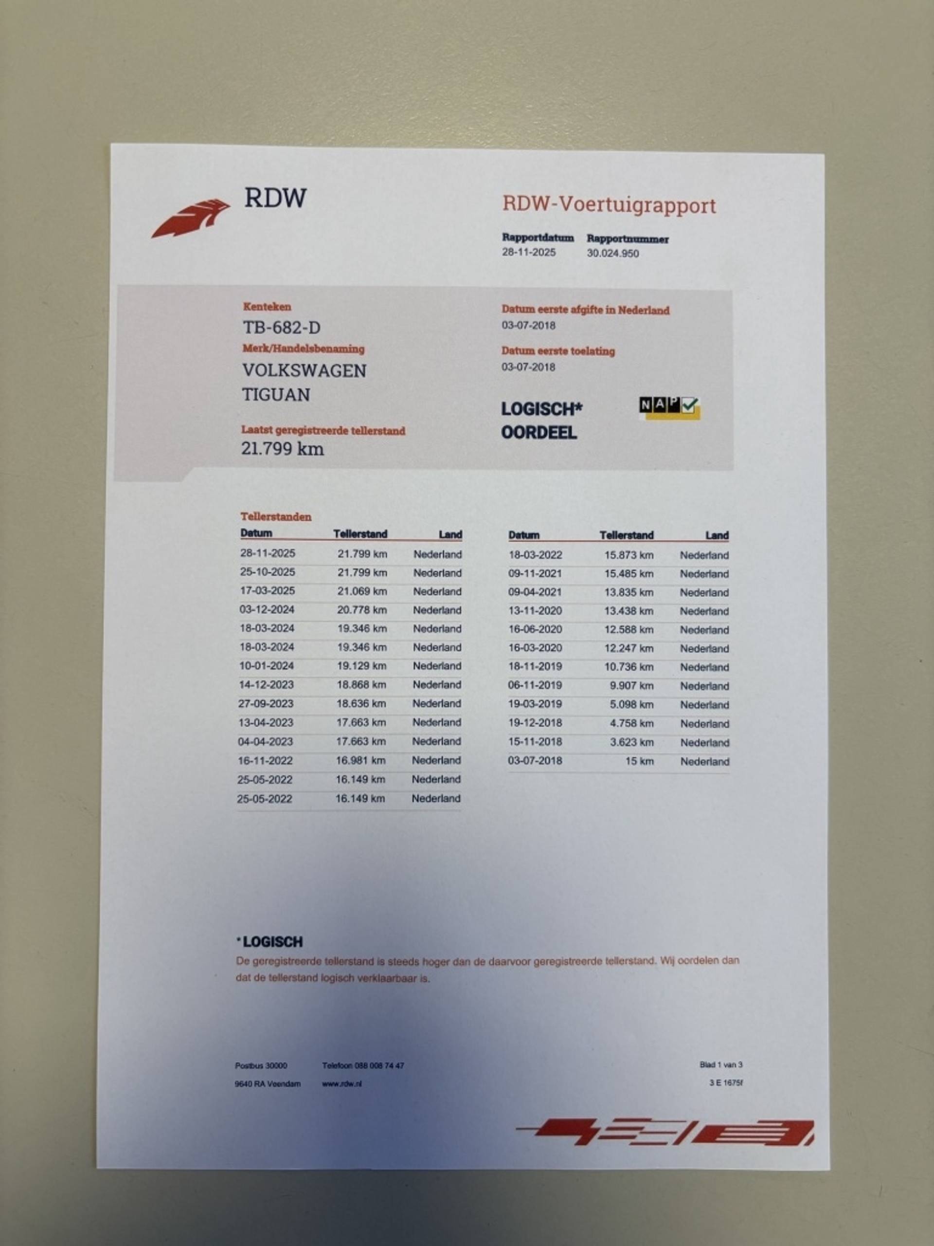 Uniek! Volkswagen Tiguan 1.4 TSI Highline met slechts 21.799 kilometer (NAP certificaat aanwezig) van 1e eigenaar. Rijk uitgerust met onder andere; navigatiesysteem, achteruitrijcamera, automatische airco, adaptieve cruise control, elektrisch schuif/kanteldak, parkeersensoren voor en achter, LED verlichting, lichtmetalen velgen, stoelverwarming, virtueel dashbord, elektrisch bedienbare achterklep, keyless entry/go en DSG automaat. Alle boekjes/onderhoudsfacturen zijn bij de auto aanwezig, evenals twee sleutels. Auto wordt geleverd met afleveringsbeurt, nieuwe APK-keuring en kenteken tenaamstelling. Afleveringskosten bedragen € 295,- Voor meer informatie kunt u kijken op www.benniemulder.nl of bel vrijblijvend 0570-561456. Uw nieuwe auto financieren? Ook dat kan bij Autobedrijf Bennie Mulder, we spreken de mogelijkheden graag met u door. Het is ook mogelijk om 's avonds of 's zondags een auto te komen kijken, maakt U hiervoor dan eerst een afspraak.