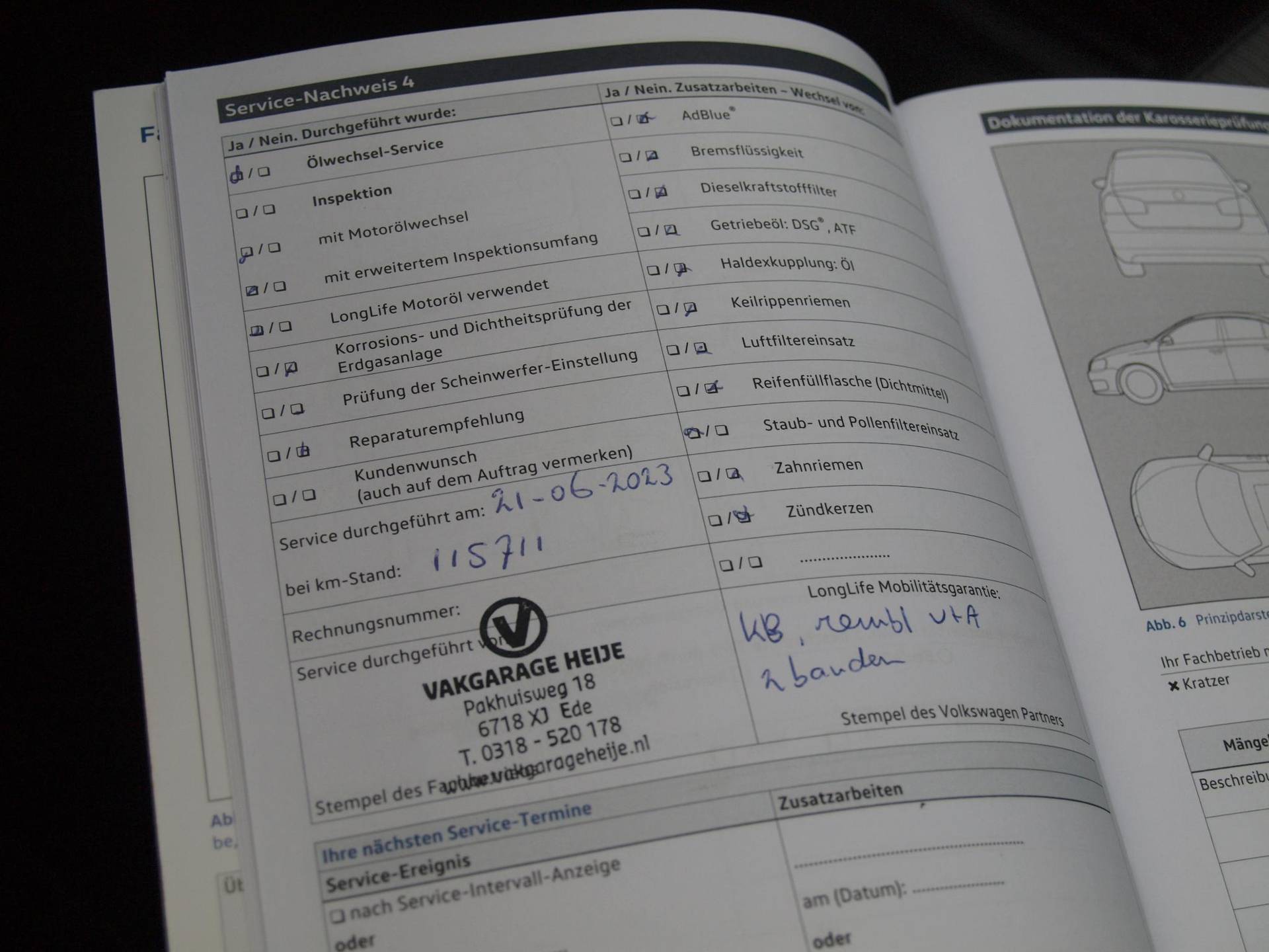 ✓ Onderhoudsboekje (fysiek)