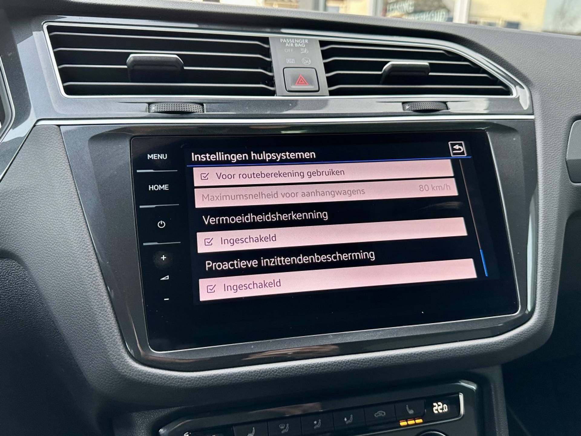 De nieuwste veiligheidssystemen komen in deze Volkswagen Tiguan samen. Verkeersbord-detectie herkent verkeersborden en toont deze op het instrumentarium van de auto. Het risico van een kop-staartbotsing wordt aanzienlijk verminderd door de forward collision warning. Vermoeid achter het stuur zitten vergroot de kans op een ongeval. Vermoeidheidsherkenning waarschuwt tijdig als je aan een rustpauze toe bent. Verder is deze auto uitgerust met hill hold functie, Abs - anti blokkeer systeem met brake assistant en bandenspanningcontrolesysteem.