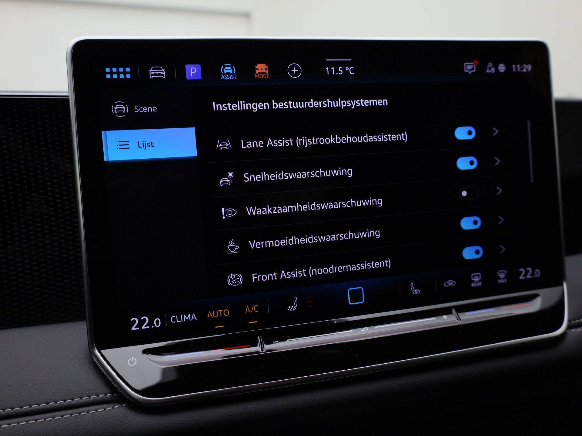 Het rijden met deze Volkswagen wordt nog meer ontspannen dankzij de innovatieve technieken die onderweg over uw veiligheid waken. Belangrijk voor uw veiligheid en die van uw passagiers is de verkeersbord-detectie in deze auto. Het Lane-keeping systeem zorgt dat u mooi binnen de lijntjes blijft. Ongemerkt buiten de rijstrook komen is er niet meer bij. Het forward collision warning-systeem is constant alert en detecteert via sensor de afstand tot voorliggers. Wordt die te klein, dan volgt een automatische waarschuwing. De veiligheid van deze auto wordt verder verhoogd door dodehoekdetectie, front assist, hill hold functie, vermoeidheidsherkenning, frontale botsbescherming en bandenspanningcontrolesysteem.