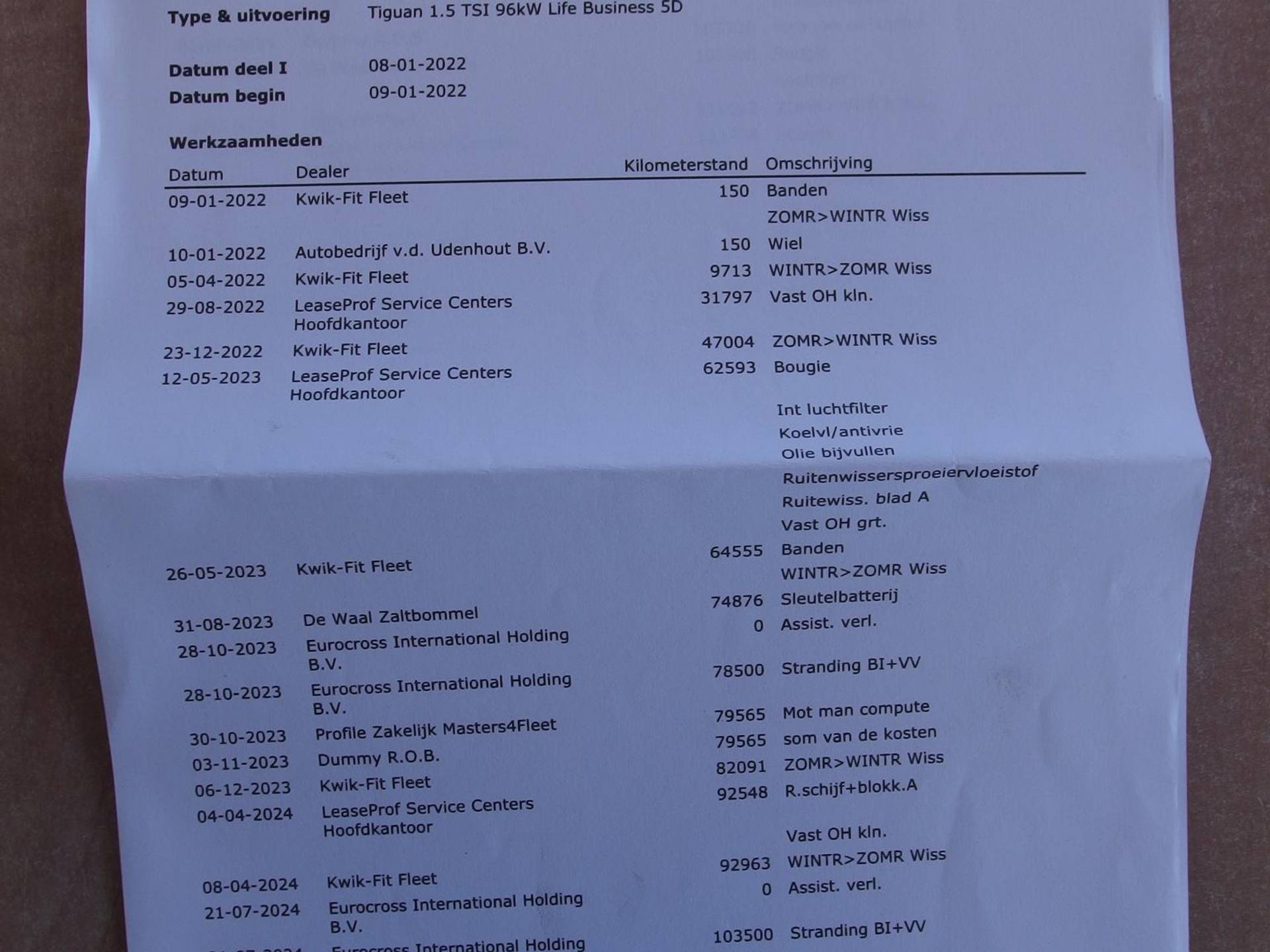 ✓ Volledige service geschiedenis