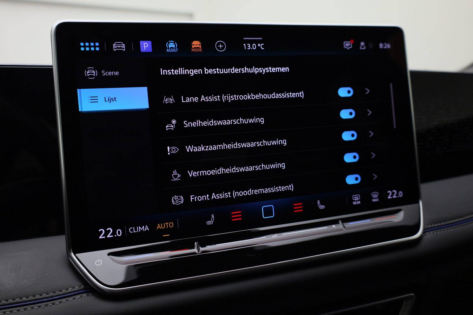 De automatische veiligheidssystemen in deze Volkswagen fungeren als een extra paar ogen. En dat niet alleen, ze kunnen ook actief ingrijpen, om zo u en uw passagiers te beschermen. Snelheid en andere benodigde info hoeft u niet meer te bekijken op het dashboard. De head-up display projecteert de gegevens in de voorruit. Verkeersbord-detectie herkent verkeersborden en toont deze op het instrumentarium van de auto. Mooi binnen de lijnen van de rijstrook blijven? Het Lane-keeping systeem helpt altijd een handje. Verder is deze auto uitgerust met dodehoekdetectie, front assist, forward collision warning system, hill hold functie, vermoeidheidsherkenning en autonoom remsysteem.
