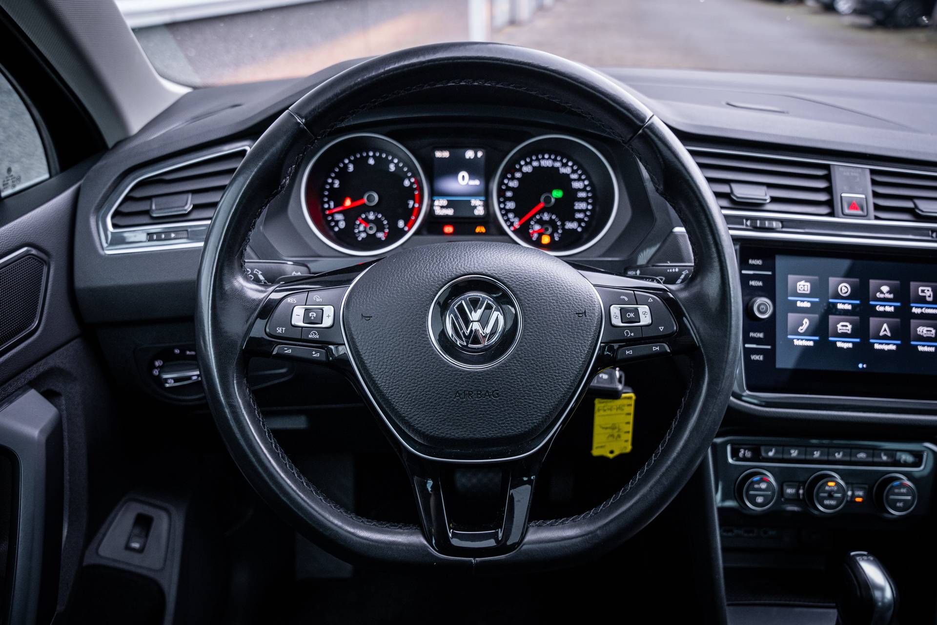 Een Duitse auto biedt altijd iets meer: betere rijeigenschappen, meer comfort, meer bouwkwaliteit. Zoals het een echte Volkswagen betaamt, verkeert deze Tiguan in uitstekende conditie. De krachtige benzinemotor van deze auto is gekoppeld aan een automatische transmissie. Wat bij sommige auto's pure luxe is, heeft deze gewoon aan boord: het elektrisch bediende glazen panorama dak en de elektrisch bedienbare achterklep. Op koude dagen voelt u zich snel behaaglijk op de verwarmbare stoelen. Ook 17 inch lichtmetalen velgen, adaptieve mistlampen, extra getint glas, in delen neerklapbare achterbank, LED-achterlichten en verstelbare lendensteunen zijn aan boord. Geen nekkramp of spiegelwerk meer bij het achteruitrijden: de achteruitrijcamera kijkt en ziet alles! Met adaptive cruise control houdt deze auto automatisch afstand tot uw voorligger. Met de knoppen op het stuur regelt u het audiosysteem en het full map navigatiesysteem, terwijl u uw blik op de weg gericht houdt. De audio-installatie biedt daarbij glasheldere ontvangst dankzij DAB-ontvangst. Te weinig afstand tussen u en de achterligger? De sensoren registreren het direct en de achteropkomend verkeer waarschuwing geeft een signaal. Automatische airconditioning verwarmt of koelt het interieur met een druk op de knop. Deze auto is voorzien van sportstuur met schakelpaddels, regensensor, automatisch dimmende binnenspiegel, centrale deurvergrendeling met afstandsbediening, bagage afdekhoes en boordcomputer. Zoals u mag verwachten van deze Volkswagen Tiguan is hij uitgerust met een reeks aan actieve veiligheidssystemen. Keep your lane? Het Lane-keeping systeem zorgt er automatisch voor. Forward collision warning waarschuwt bij een dreigende aanrijding en vermindert de gevolgen van een ongeval. Met de vermoeidheidsassistent bent u ook op lange ritten veilig op pad. Het systeem geeft een waarschuwing zodra het tijd is voor een pauze. In deze Volkswagen vinden we verder een dodehoekdetectie, hill hold functie, brake assist en bandenspanningcontrolesysteem. Hebben we u nieuwsgierig gemaakt? Grijp dan uw kans en plan direct online een proefrit.