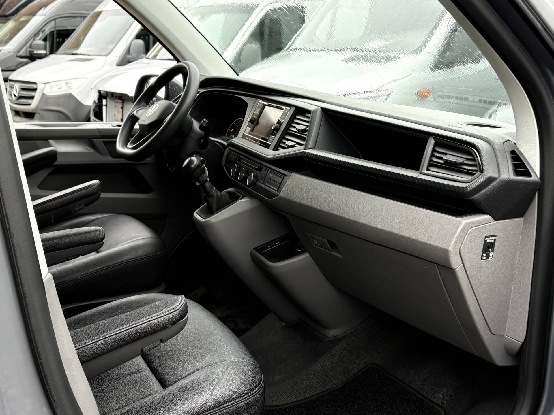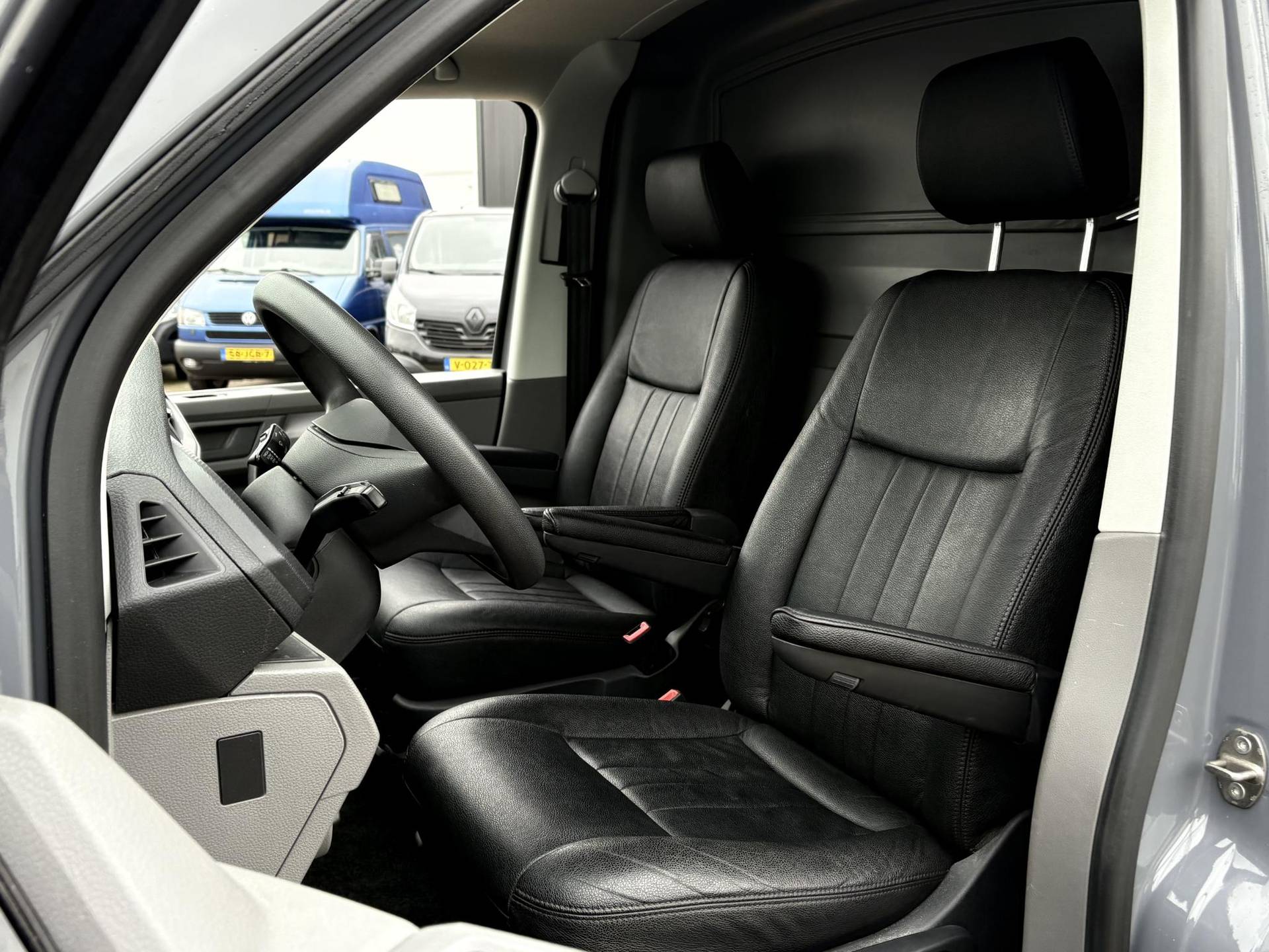 Voorzien van airconditioning, cruise control met optionele snelheidsbegrenzer, parkeersensoren, boordcomputer en radio met Apple CarPlay en telefoonvoorbereiding. Driezits cabine met rubber vloer en afsluitbare tweezitsbank rechts.