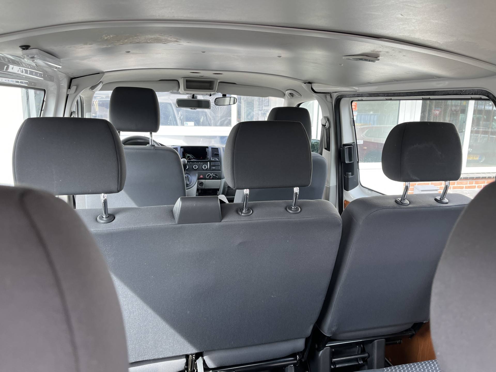 Een zeer nette Volkswagen Transporter Kombi 9 persoons 2.0 TDI DSG 140 pk Automaat L1H1 met Cruise control, Trekhaak 2.500 kg, Comfort-pakket (Airco, buitenspiegels elektrisch verstel- en verwarmbaar, centrale vergrendeling met afstandsbediening, elektrische ramen voor, mistlampen voor adaptief), Parkeerhulp vóór en achter, Voorstoelen in hoogte verstelbaar.