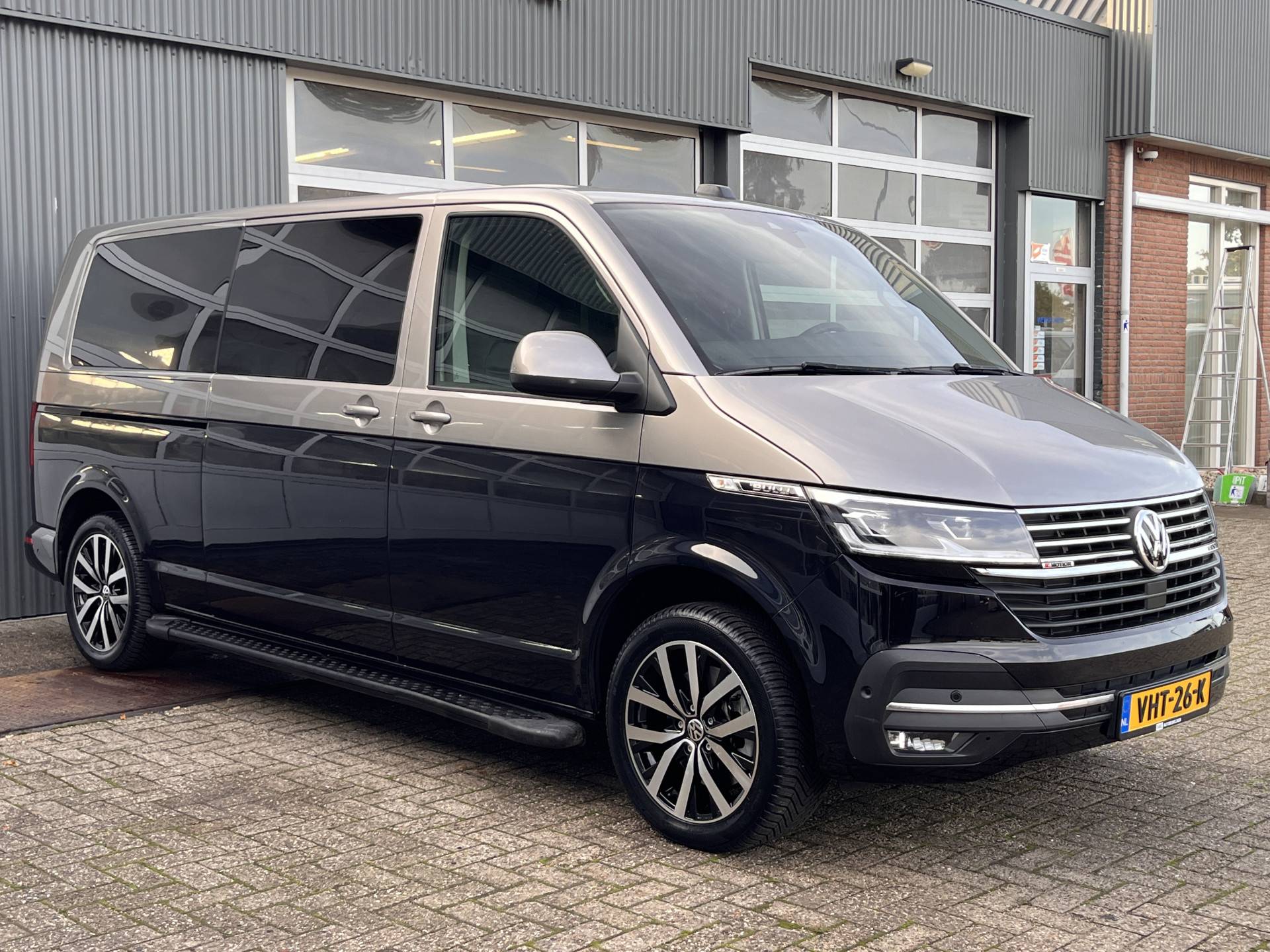 Een zeer nette Volkswagen T6.1 Bulli 2.0TDI 200pk DSG Automaat 4Motion Dubbele cabine L2H1 met 2 elektrische schuifdeuren en achterklep Lederbekleding Two tone kleur Airco Cruise controle Camera Led Navigatie Apple carplay Trekhaak 2500kg 4x4 ACC Vol opties !! Euro 6 Dealer onderhouden