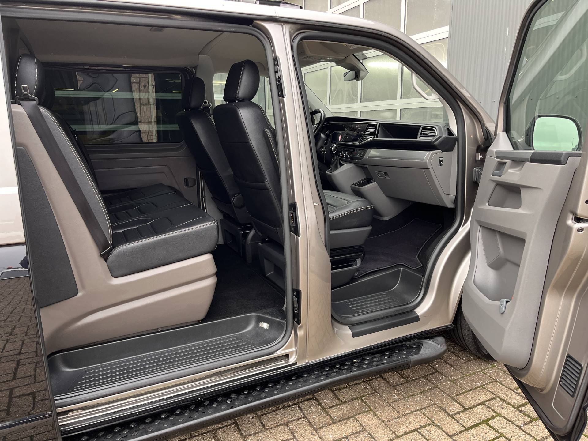 T6.1 2.0 TDI L2H1 200 pk DC 4 Motion Highline Bulli 2x elektrische schuifdeuren en achterklep 4x4 Leder Two-tone kleur Airco Cruise controle Trekhaak 2500kg Dealer onderhouden Vol!! Dubbele cabine 4WD BPM VRIJ