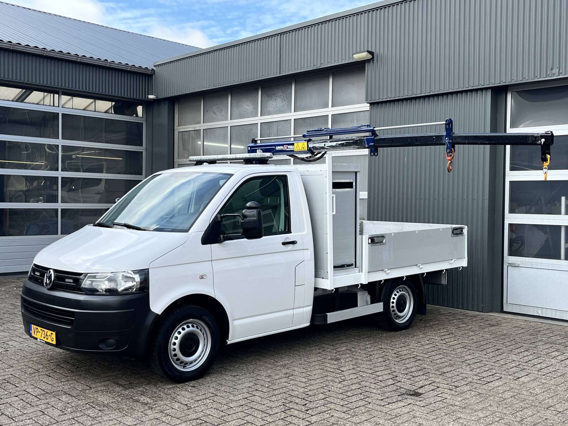 Een zeer nette Volkswagen Transporter 2.0 TDI 102pk Laadkraan Amco Veba Pick up open laadbak Pick-up met Trekhaak 2200 kg trekgewicht 2-Persoons Werkverlichting 1e eigenaar BPM vrij !!!