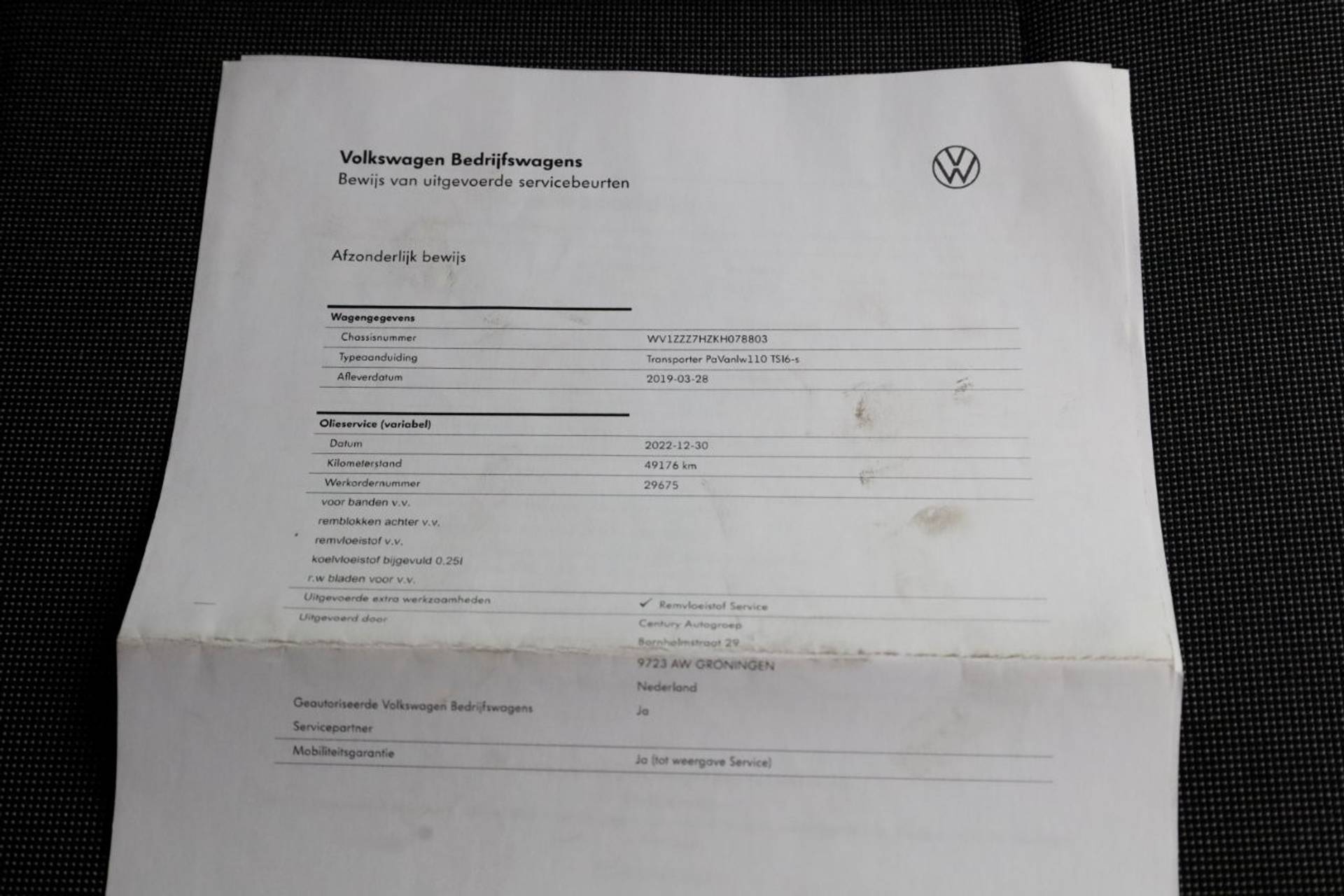 ✓ APK bij aflevering: J