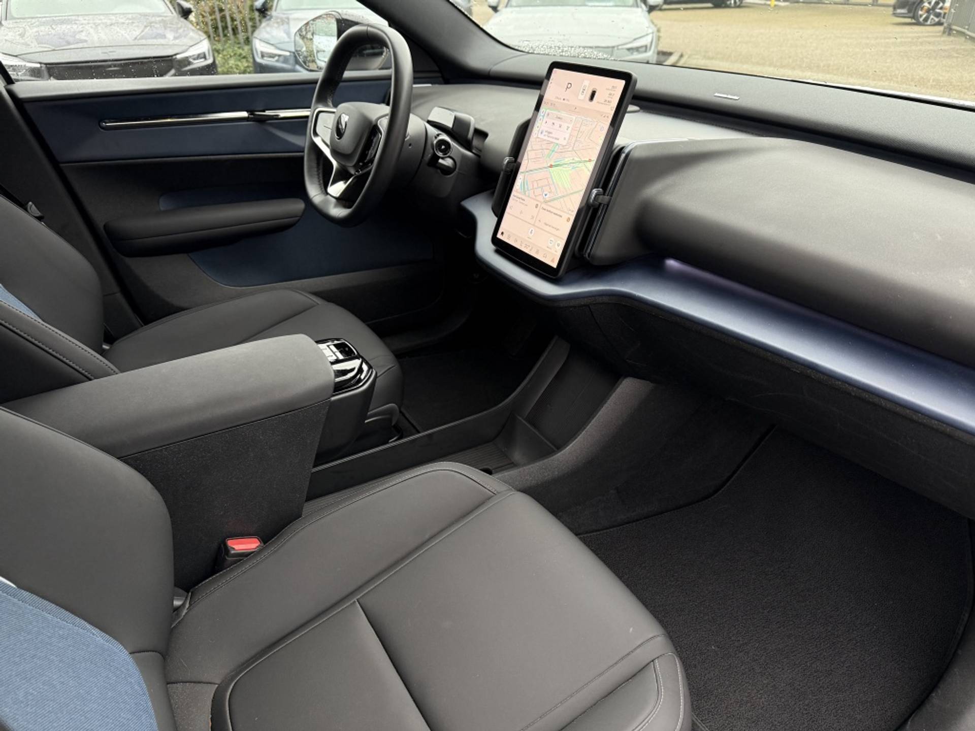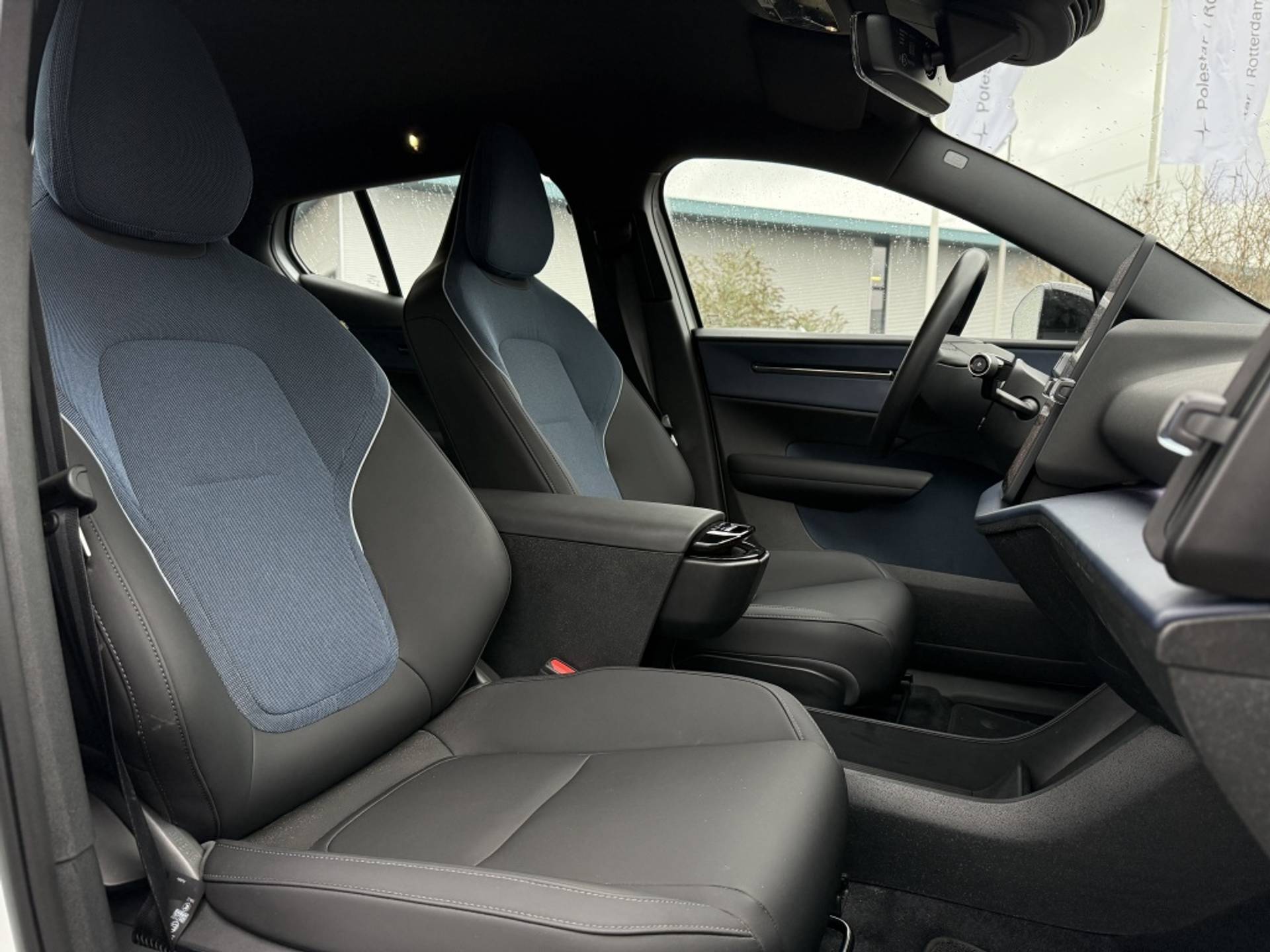 De Volvo EX30 Extended Plus 69 kWh is uitgevoerd in de schitterende Crystal White Pearl metallic lak, waardoor hij niet alleen opvalt op de weg maar ook een stijlvolle uitstraling heeft. Het interieur is afgewerkt met luxe kunstleder in de kleur zwart en biedt maximaal comfort en elegantie. De stuur- en stoelverwarming zorgen ervoor dat u zelfs op de koudste dagen warm en ontspannen kunt rijden.
