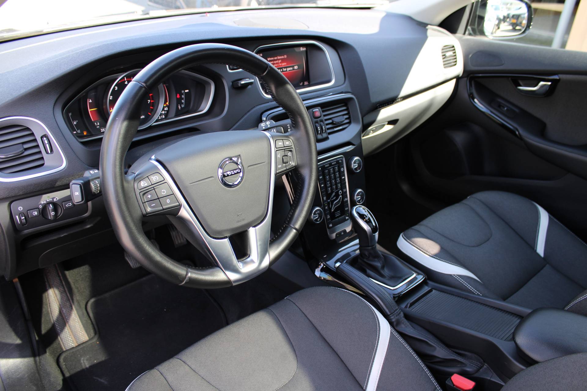 Van uw nieuwe auto verlangt u rijplezier, maar ook optimaal comfort en veiligheid. Daarom is de Volvo V40 Cross Country de auto die u zoekt. De krachtige benzinemotor staat garant voor uitstekende prestaties. De verwarmbare voorstoelen benadrukken nog maar eens dat we hier te maken hebben met een regelrechte verwenauto voor bestuurder en bijrijder. Bij de zeer complete uitrusting van deze auto behoren ook 17 inch lichtmetalen velgen, LED koplampen, halflederen bekleding, dakspoiler, in delen neerklapbare achterbank en LED-achterlichten. Het digitale dashboard is niet alleen enorm fraai en handig, maar draagt actief bij aan een veilige en slimme rit. Oliepeil, bandenspanning, sloten en andere functies zijn via een speciale app overal te checken dankzij Connected Services. Tijdens de rit bedient u het audio-installatiesysteem en het navigatiesysteem met harde schijf met de knoppen op het stuur of met uw stem. Omdat u nu eenmaal niet overal ogen heeft, is deze Volvo V40 Cross Country voorzien van een achteropkomend verkeer waarschuwing die registreert wanneer de afstand tot uw achterligger te krap is. In een auto als deze kunt u niet zonder electronic climate control, zodat de temperatuur altijd goed is. U bent in deze Volvo ook voorzien van parkeersensoren achter, regensensor, cruise control, dvd-systeem, automatisch dimmende binnenspiegel en lederen stuur en versnellingspook. Pragmatisch en veilig als deze auto is, beschikt hij over diverse veiligheidssystemen. Een veilige extra is de Brake Assist. Uit onderzoek blijkt dat bestuurders bij een noodstop niet het maximum uit hun remkracht halen. Met deze automatische remondersteuning wel. Ook helpen het hill hold functie en bandenspanningcontrolesysteem, uw rit tot een veilige rit te maken. Interesse voor deze Volvo V40 Cross Country? Kom 'm dan van dichtbij bekijken. We maken graag een afspraak.
