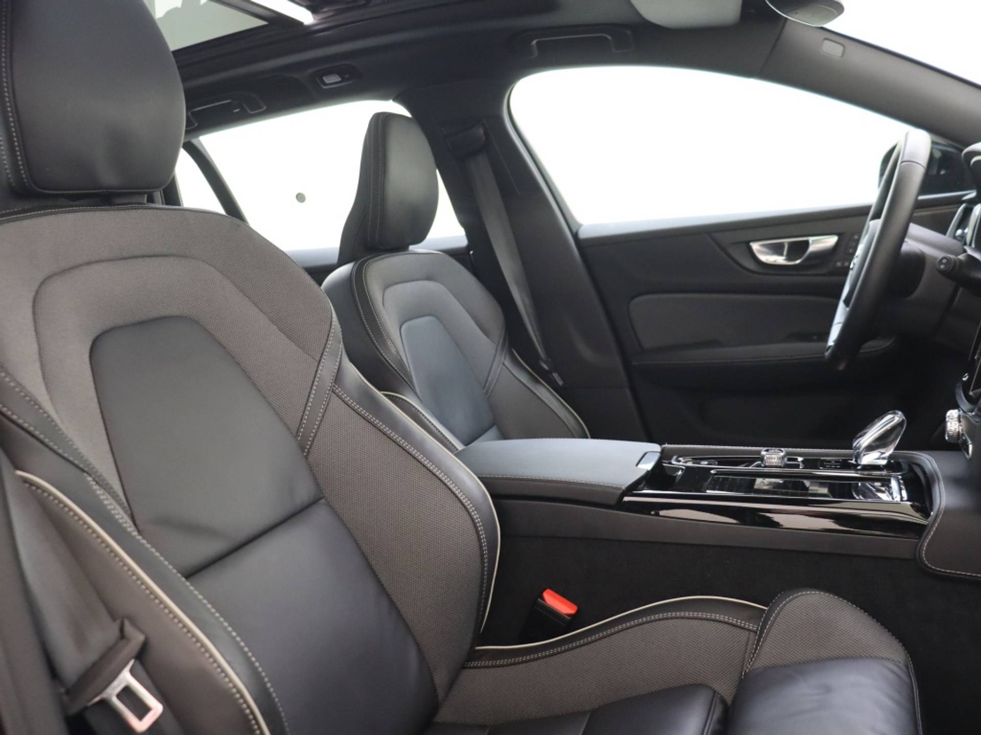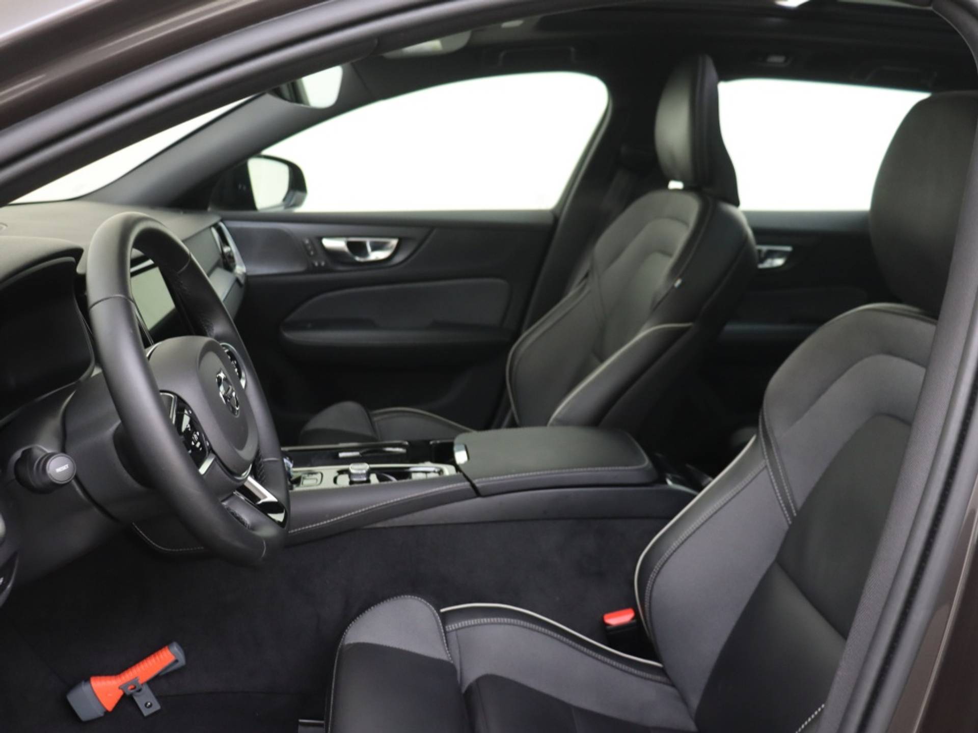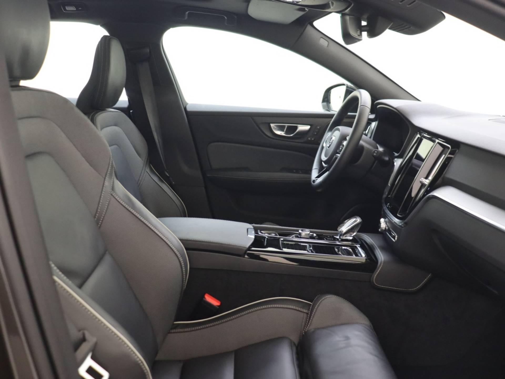 Binnenin de Volvo V60 ervaar je luxe en comfort dankzij de hoogwaardige lederen/stof bekleding en de stijlvolle aluminium interieur afwerking. Het stuur is multifunctioneel en biedt gemakkelijke bediening van diverse functies, terwijl het navigatiesysteem je helpt om moeiteloos je weg te vinden.