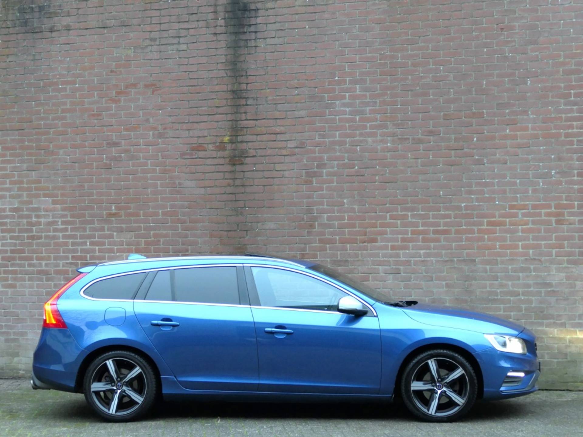 De metallic lak geeft de auto een glanzende en hoogwaardige uitstraling. Het blauwe exterieur komt helemaal tot zijn recht en zorgt ervoor dat de Volvo V60 er altijd uitspringt op de weg. Met zijn elegante lijnen en sportieve look is dit een auto waar je trots op kunt zijn.