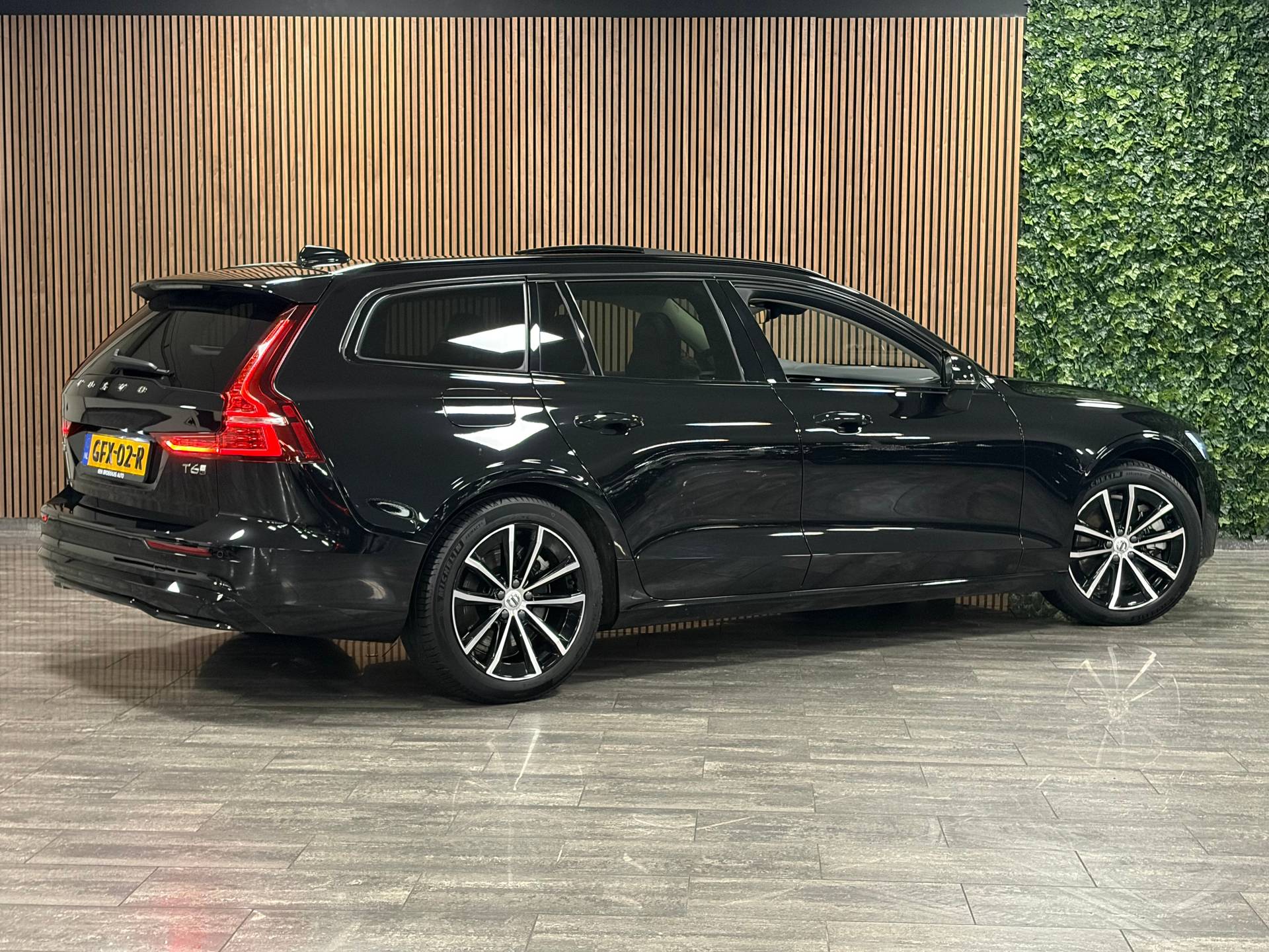 V60 T6 AWD Recharge Plus Dark | Schuifdak | Trekhaak | Adaptieve Cruise Control | Stoelverwarming voor+achter | Stuurwielverwarming | Parkeercamera | Full LED Meesturende koplampen | Pilot Assist | BLIS Dode Hoek Detectie | Elektrische voorstoelen geheugen | Lederen bekleding | Zitting verlenging voorstoelen | Zitting verlenging voorstoelen | Google Infotainment | 18 Inch | Keyless Drive | Parkeersensoren voor+achter | Privacy Glass | Elektrisch bedienbare achterklep | DAB Radio | Apple Carplay/Android Auto | Volvo On Call met mobiele App functie | Onyx Black Metallic |