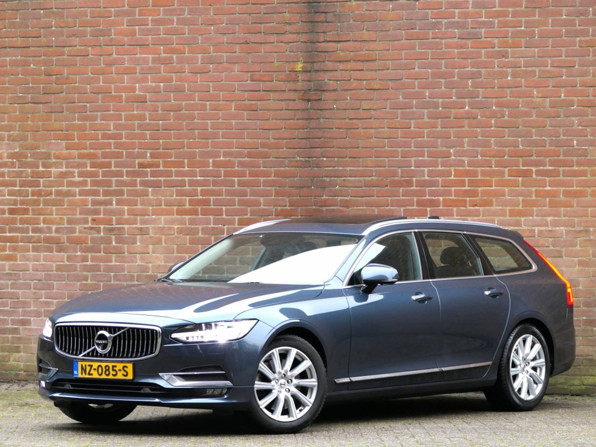 De blauwe kleur van de auto geeft hem een stijlvolle en elegante uitstraling. De metallic lak zorgt ervoor dat de auto extra glanst in de zon en dat de kleur nog beter tot zijn recht komt. Met zijn combi-carrosserie en 5 deuren is de Volvo V90 niet alleen praktisch, maar ook mooi vormgegeven.