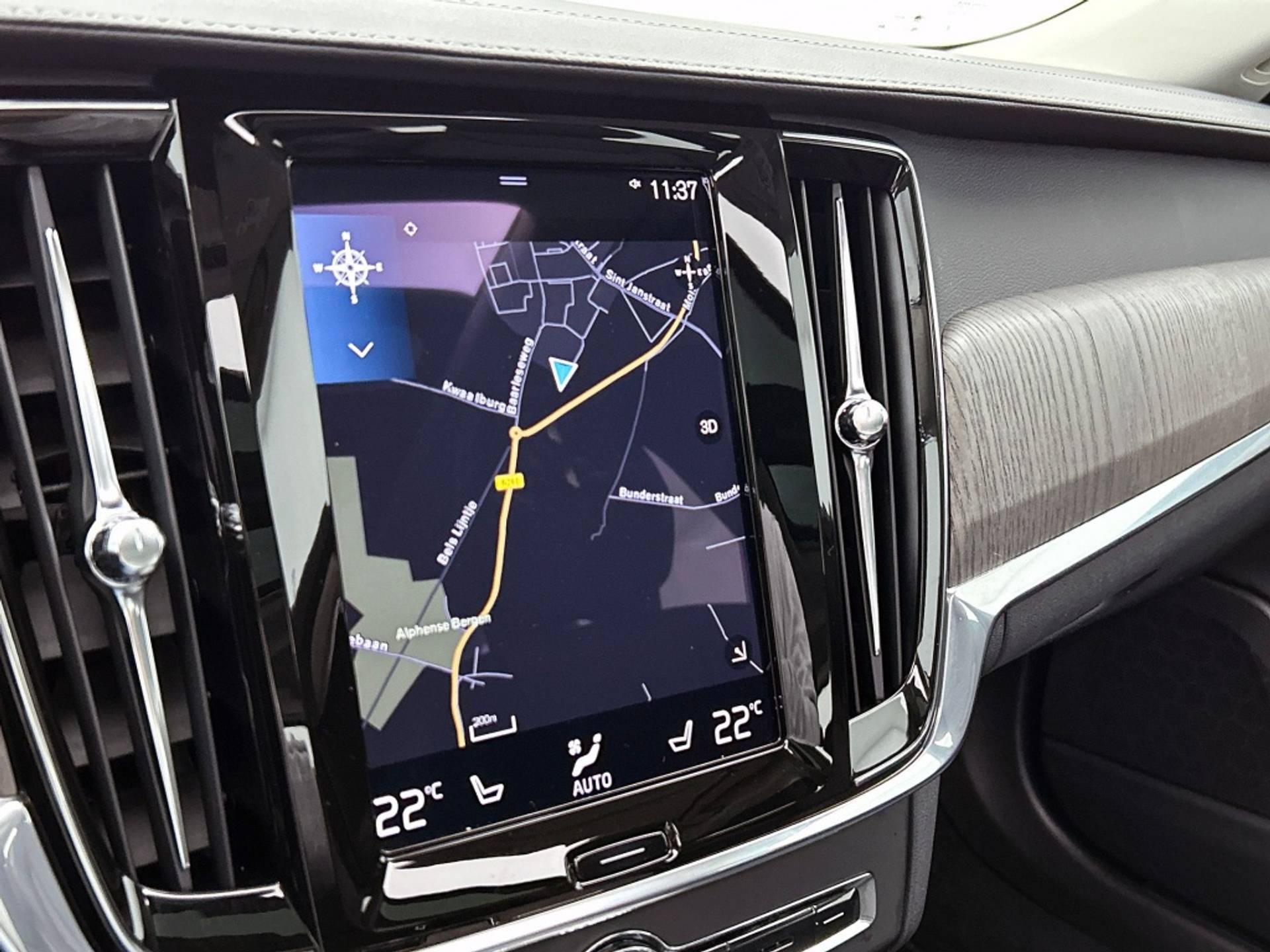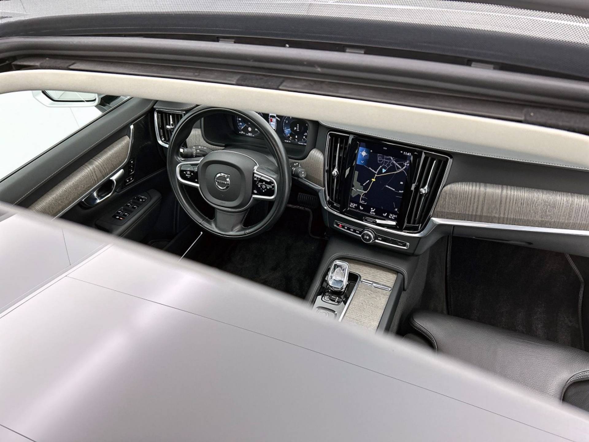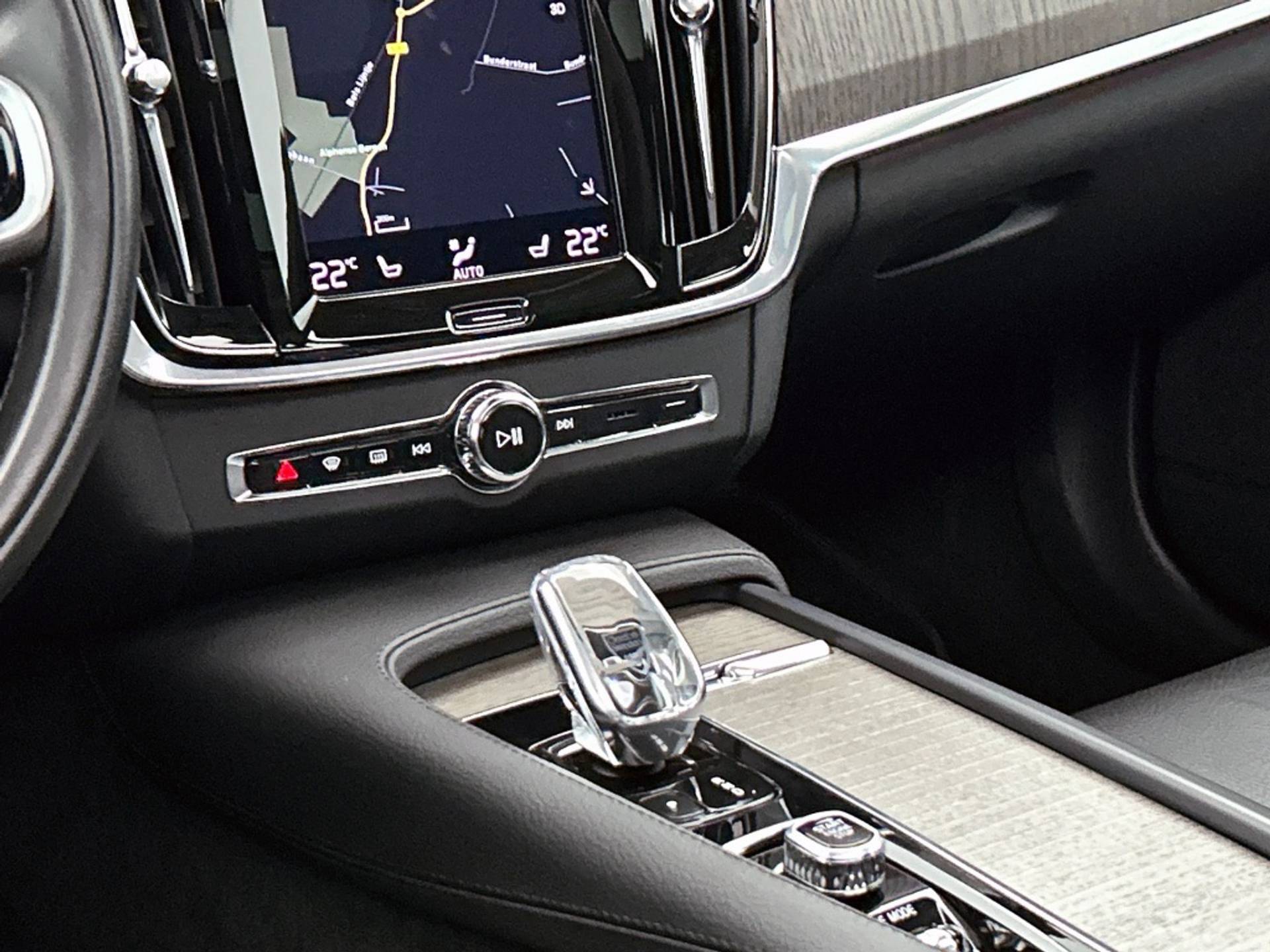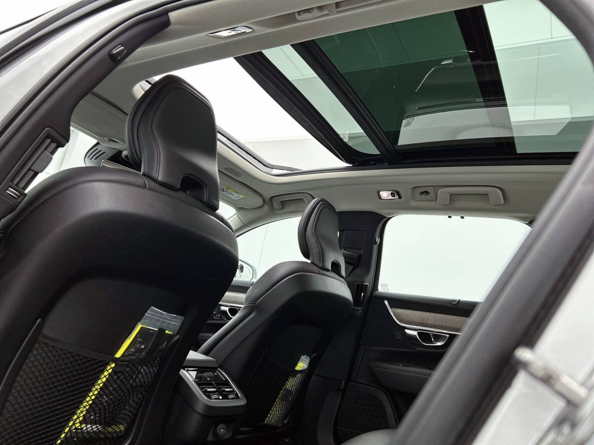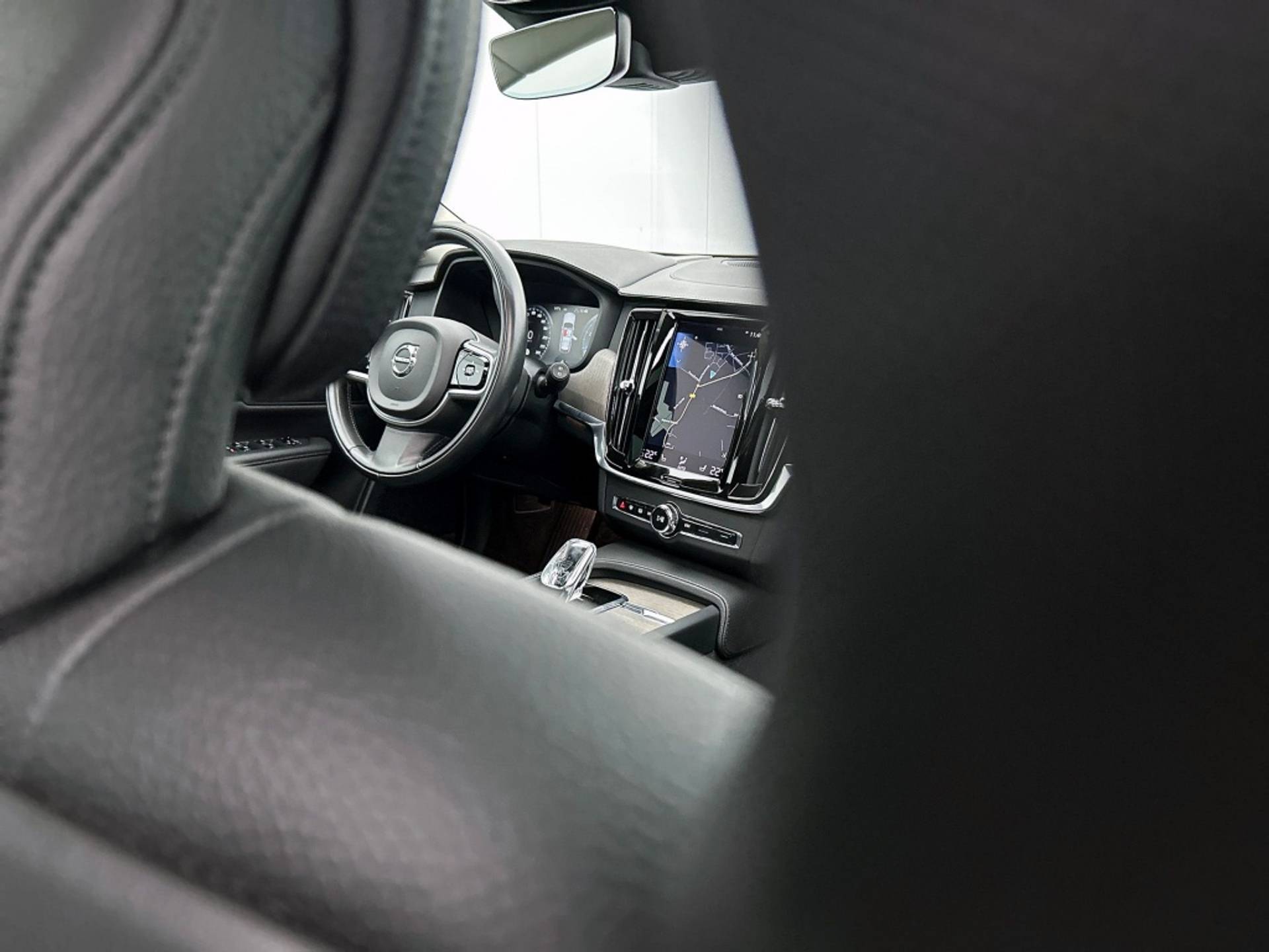 Het interieur van de Volvo V90 B4 Inscription is tot in de puntjes afgewerkt. Zo vind je een comfortabele armsteun achter en een binnenspiegel die automatisch dimt, zodat je niet verblind wordt door tegenliggers.