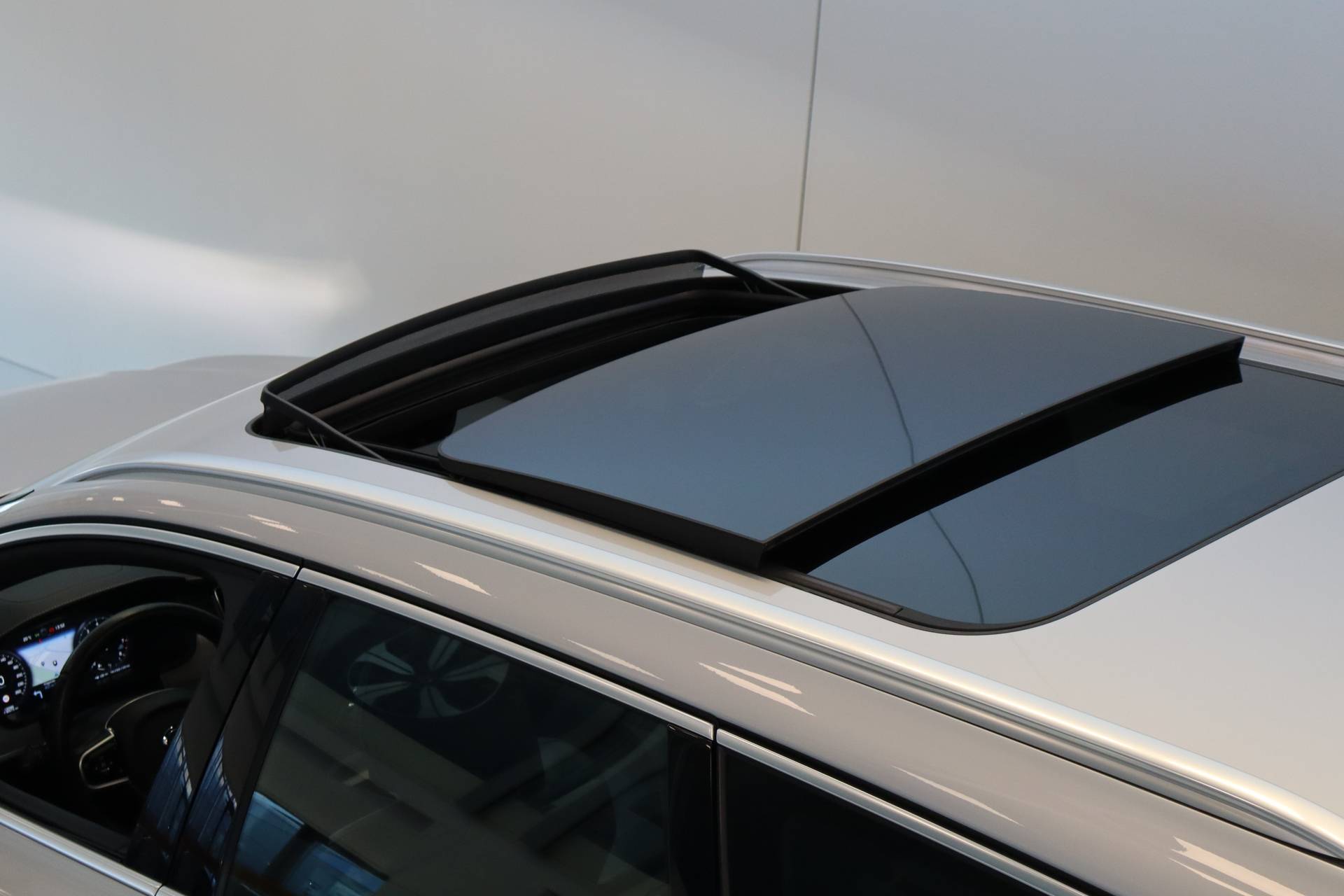- Elektrisch bedienbaar tweedelig panoramisch glazen schuif-/kanteldak met elektrisch bedienbaar zonnescherm