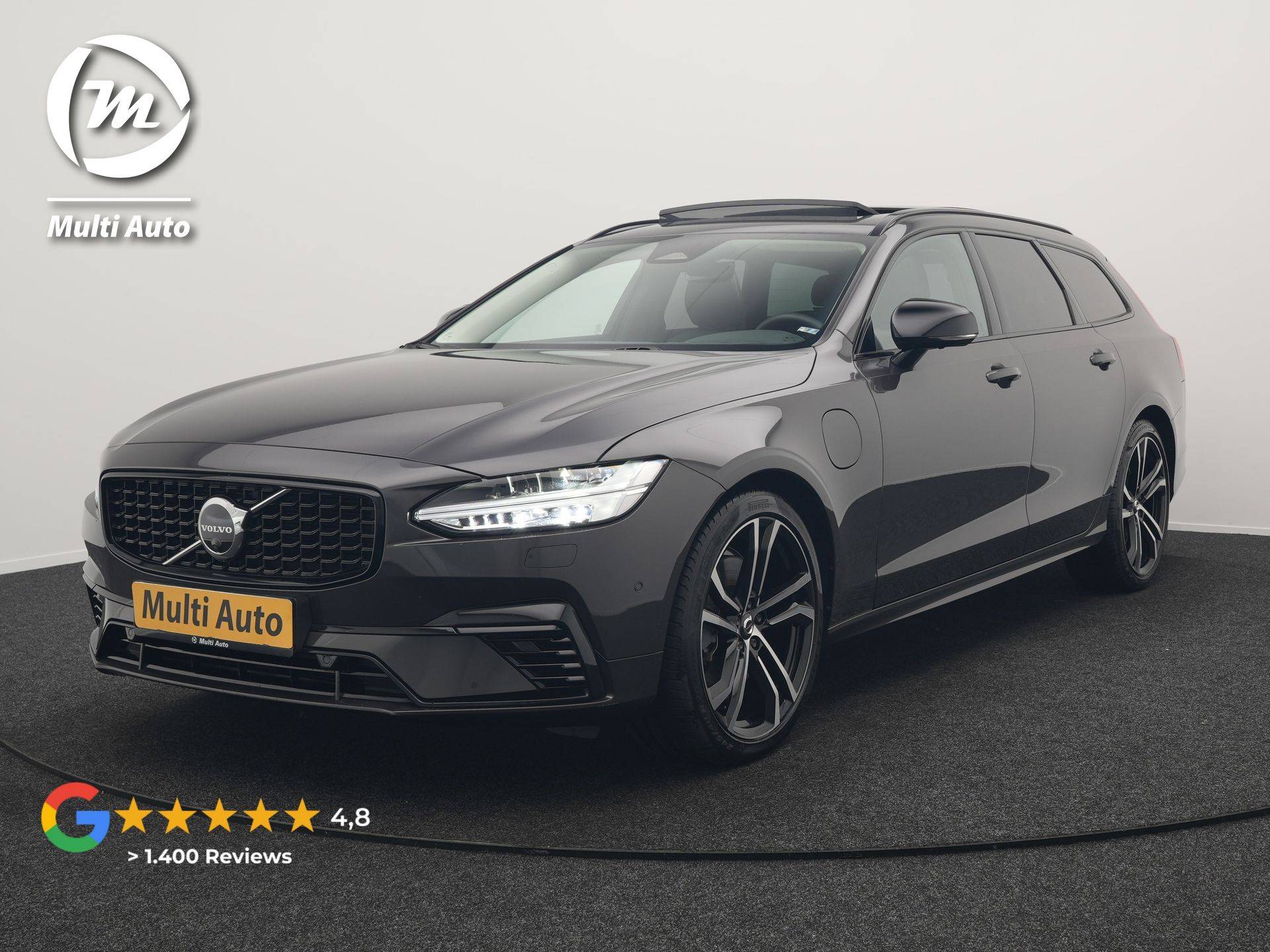 Volvo V90 T8 AWD Ultimate Dark Plug In Hybrid 455pk Dealer O.H. PHEV | Panodak | Adaptive Cruise | Head Up | 360 Camera | Lederen Sportstoelen Ventilatie & Memory | Harman & Kardon | Google Assistent | Apple Carplay | Stoelen & Stuur Verwarmd | Blis |