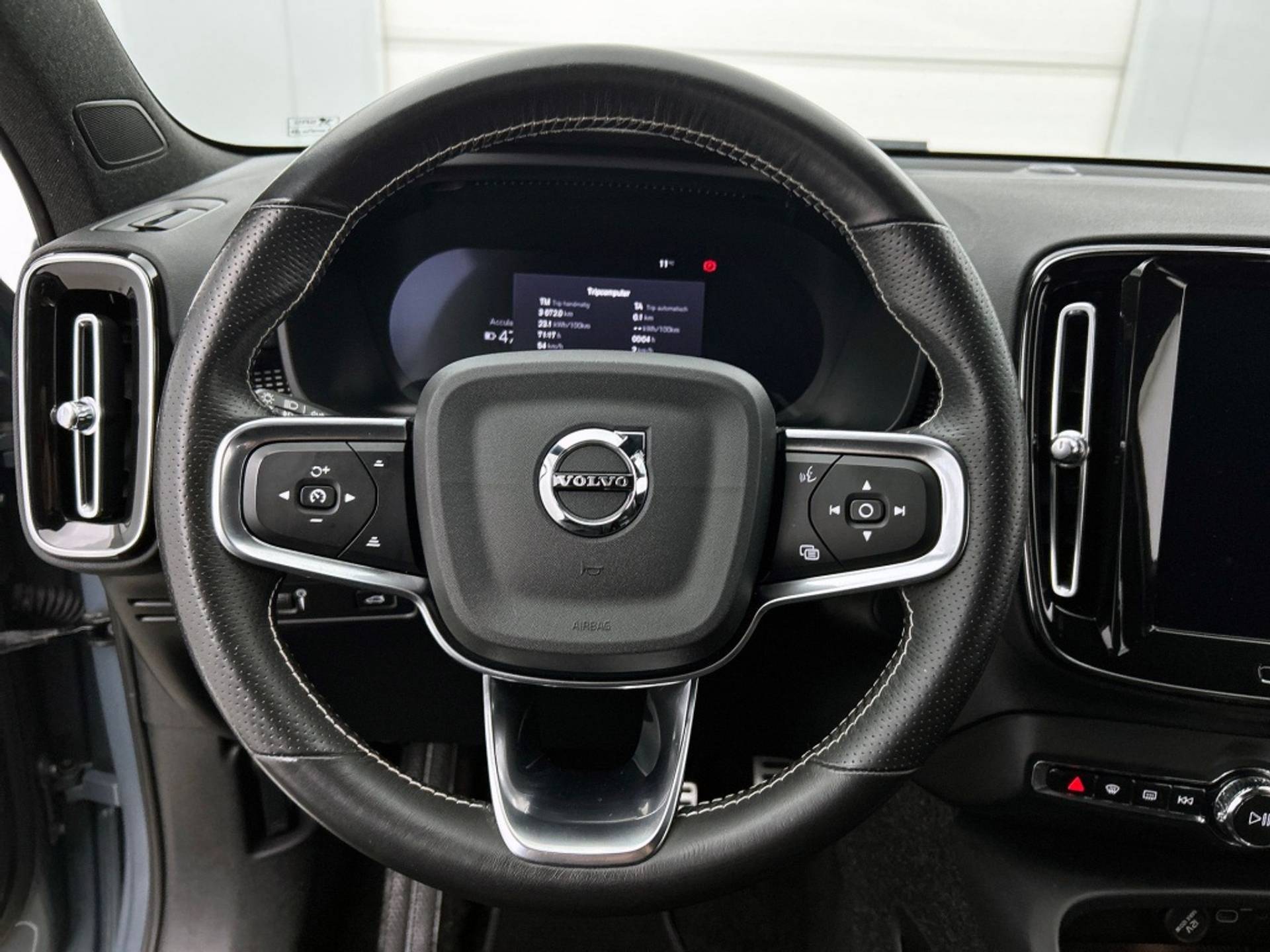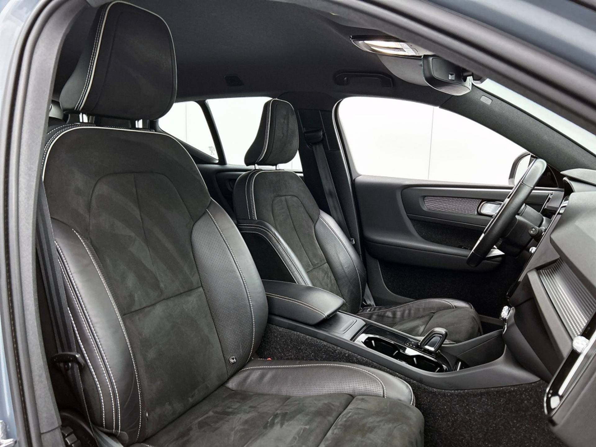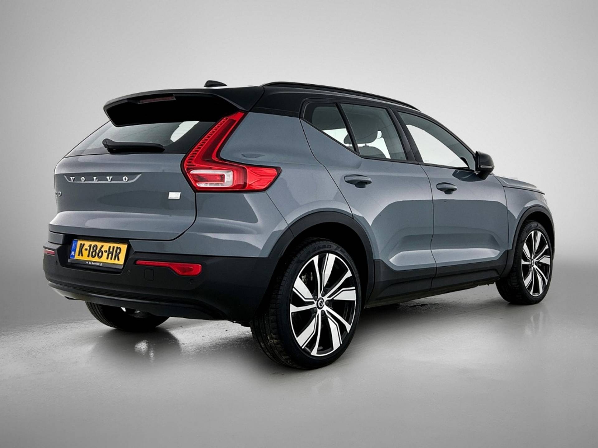 De XC40 Recharge is uitgevoerd in een stijlvolle grijze kleur en heeft een robuuste uitstraling die perfect past bij zijn SUV-carrosserie. De 20" velgen geven de auto een sportieve look en zorgen voor een comfortabele en stabiele rit, zowel in de stad als op de snelweg.